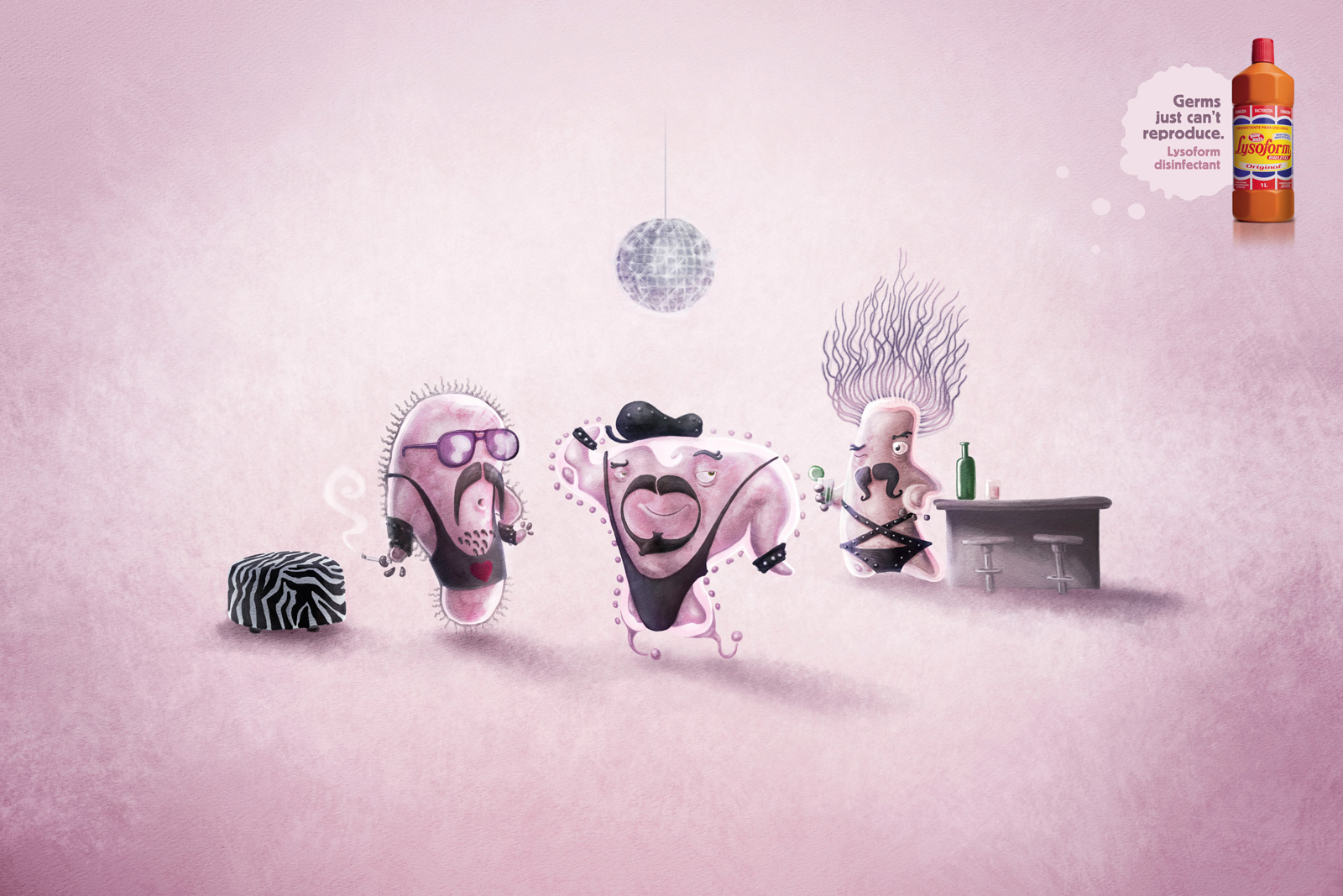 Lysoform превратит микробов в гомосексуалистовВеселая рекламная кампания дезинфицирующего средстваБразильское агентство DPZ Propaganda разработало рекламу дезинфицирующего средства Lysoform от фирмы Bombril. Чтобы показать, что Lysoformнадежно избавит от любой заразы, креаторы из Сан-Паулу изобразили микробов, придав им человеческие черты. Но прототипом послужили люди с проблемами в постели, несчастные одиночки, пару которым составляет лишь надувная кукла и гомосексуалисты, причем в довольно утрированном образе. Комические образы приправлены слоганом, который с изрядной серьезностью объявляет, что при использовании средства Lysoform микробы попросту не могут размножаться. Состав творческой группы |