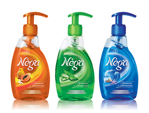 DDC Creative Lab: дизайн жидкого мыла «Нега»Агентство DDC Creative Lab разработало логотип и дизайн этикеток мыла торговой марки "Нега" для компании "Домбытхим".Оформление этикеток яркое, построено на насыщенной цветовой гамме, поддерживаемой цветом жидкого мыла, контрастном выделяющемся логотипе и крупных изображениях ароматических ингредиентов продукта. Состав творческой
