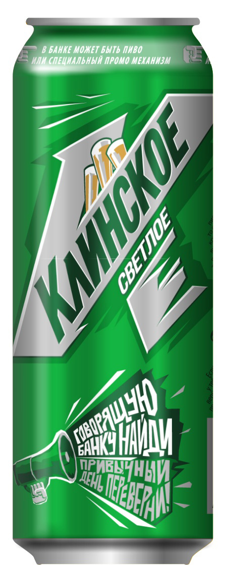 Если пиво разговаривает с человеком…Компания SUN InBev и агентство Target создали уникальный продукт для пива «Клинское Светлое» «Говорящая банка» - инновационный POS материал с сюрпризом. Воплотить идею клиента – компании SUN InBev - в жизнь удалось агентству Target (входит в Progression Group). Своими силами Target разработали оборудование, технологию производства, позволившие, впервые в России, заговорить жестяной банке. Весь рабочий процесс обошелся без участия патентодержателей. C точки зрения технического исполнения, - проект достаточно сложен. В жестяную пивную банку вмонтировано устройство со звуковым модулем и датчиком света. При открывании банки звуковой модуль начинает воспроизводить веселое сообщение. При покупке «говорящей» банки Клинского можно получить приз – 50руб. на мобильный телефон или две банки «Клинское Светлое». Банка остается герметичной и в открытом, и в закрытом состоянии. Хранить такую банку нужно в помещении при комнатной температуре. Акция началась с поступления в продажу ограниченного тиража «говорящих» банок Клинского, завершившись в конце июня. В мире технология «talking can» уже давно очень популярна, в России интерес к ней пока невысок.