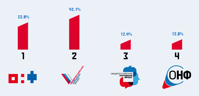 Народный фронт выбирает логотип при помощи интернет-голосованияВсего предложено четыре вариантаСайт общероссийского народного фронта разместил на главной странице адресованное всем желающим предложение выбрать логотип для этого движения. Всего на выбор предложено четыре варианта. Проголосовав, можно посмотреть результаты - на настоящий момент первый вариант логотипа набрал 32 процента, второй - 42 , а третий и четвертый – по двенадцать процентов соответственно. Общероссийский народный фронт был создан премьером Владимиром Путиным. Базовые принципы этой организации предполагают совместное формирование участниками фронта списка кандидатов от «Единой России» на выборах 2011 года в Государственную Думу. На настоящий момент в него принимают не только общественные объединения, как в начале его деятельности, но частных лиц. Вступить в эту организацию можно, написав письмо на имя Владимира Путина на сайте «Народного фронта», или обратившись в общественную приемную президента. На настоящий момент в «Народный фронт» вступило около пятисот организаций и пять тысяч частных лиц. После того, как Владимир Путин предложил вступать в «Народный фронт не только частным лицам и организациям, но и предприятиям, глава комитета Государственной Думы по экономической политике и предпринимательству Евгений Фёдоров выразил надежду, что в «Народный фронт» вступят те предприятия, которые хотят жить и развиваться. "Если есть какой-то бизнес, который хочет умереть, суицидальный, наверное, ему не нужно стремиться поддерживать страну и консолидироваться вокруг идей фронта", - сообщил Федоров.