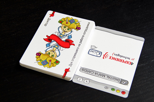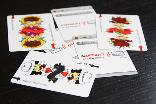 Игра «Мафия» с образами участников рынкаС 29 мая по 2 июня 2011 года во Вьетнаме прошла 7-я ежегодная конференция "Интернет. ИЗМЕНИ СОЗНАНИЕ", организованная агентством PR-Technologies & 4Experience. Традиционно рабочие сессии были разбавлены развлекательной программой, представленной партнерами конференции. В дополнение к этому, оригинальным решением стали и "сумки делегатов" с полезным и интересным содержимым от спонсоров и партнеров. В частности, организатор конференции - агентство PRT & 4Exp - разработало и специально произвело тематический подарок для участников - карты "Digital-Mafia". По аналогии со знакомой многим игрой все персонажи стилизованной игры олицетворяли собой участников рекламного рынка, и согласно обновленным правилам, участники должны выбрать бренд и продукт, кампанию по продвижению которого им предстоит организовать в рамках игры. Силы Добра - те герои, кто всячески способствуют успешному развитию кампании, силы Зла - те, по тем или иным причинам этому препятствуют. Так, силы Добра - традиционные Шлюха и Доктор - в игре digital-мафия представлены фрилансером и духом сгоревшего на работе аккаунта. Мафиозные же структуры - АСАП-менеджером и мистером "Нет" со стороны клиента. Оформленные петербуржским иллюстратором Светланой Токаренко и выполненные в юмористическом стиле карты пользовались успехом, чему свидетельствовали ночные бдения участников, увлеченных процессом и повышенный спрос на дополнительные комплекты стилизованных карт. |