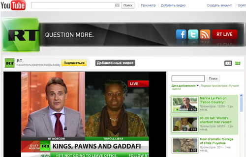 Канал RT на YouTube бьет рекорды по рекламным доходамРоссийский госканал обогнал по рекламным сборам на всемирном видеохостинге CNN International, Al Jazeera и Fox NewsПрибыль от рекламы проекта российского государственного телеканала RT на YouTube превысила полмиллиона долларов. Как заявляют представители телеканала, подобных финансовых показателей удавалось достичь лишь самым просматриваемым и популярным каналам международного видеохостинга. Эту информацию подтверждают и в российском представительстве Google. "Мы очень рады успехам RT на Youtube. Высокие показатели канала говорят не только о растущей популярности профессионального новостного контента в сети, но и об эффективности YouTube как рекламной площадки", - прокомментировал генеральный директор Google в России Владимир Долгов. По данным аналитического портала Youtube Trends, сейчас общее число просмотров RT на Youtube превышает 450 миллионов и продолжает расти в среднем на 850 тысяч в день. Благодаря этому российский телеканал прочно обосновался в середине наиболее престижного рейтинга - Top -100 самых популярных каналов за всю историю Youtube (Most Viewed All Time). Как отмечает главный редактор RT Маргарита Симоньян, руководство канала поначалу было даже обескуражено такими высокими результатами. RT оставил далеко позади большинство международных информационных телеканалов, в частности, Fox News, ABC News, Sky News, CNN International, Al Jazeera и Reuters. А в марте этого года в списке лучших за месяц RT вышел на первое место, потеснив крупнейший портал музыкальных видеоклипов западных звезд Vevo. Напомним, круглосуточный информационный канал RT был запущен в 2005 году и изначально носил название Russia Today. Вещает на английском, арабском и испанском языках. Финансируется из российского бюджета. Часто подвергается критике за излишнюю пропагандистскую направленность материалов. |