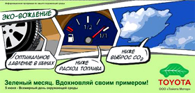 Зеленый месяц «Тойоты»Ежегодно в июне компания "Тойота Мотор" проводит в России акцию "Зеленый месяц Тойота", цель которой - привлечь внимание общественности к вопросам защиты окружающей среды. Кампания приурочена к Всемирному Дню охраны окружающей среды ООН (5 июня) и предполагает проведение тематических мероприятий для сотрудников, партнеров и клиентов компании Toyota по всему миру. Toyota Motors Corporation (Япония) объявила июнь "Зеленым месяцем" в 1973 году. В 2003 году к программе "Зеленый месяц" присоединилась компания "Тойота Мотор Европа". С 2007 года акция проводится и в России. "Зеленый месяц Тойота-2011" в России посвящен проблеме экологического следа, который человек оставляет при взаимодействии с окружающей средой, и практическим способам его уменьшения. В повседневной жизни это означает, что каждый человек может пересмотреть свой образ жизни таким образом, чтобы сократить свое негативное влияние на природу. В соответствии с этим, программа "Зеленый месяц Тойота" в России в этом году проходит под девизом "Вдохновляй своим примером!" На протяжении июня в Москве реализуется социально-информационная кампания, в которой задействованы наружные рекламные носители и открытки с практическими советами по экологическому стилю вождения. ![]()