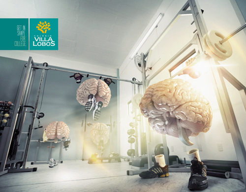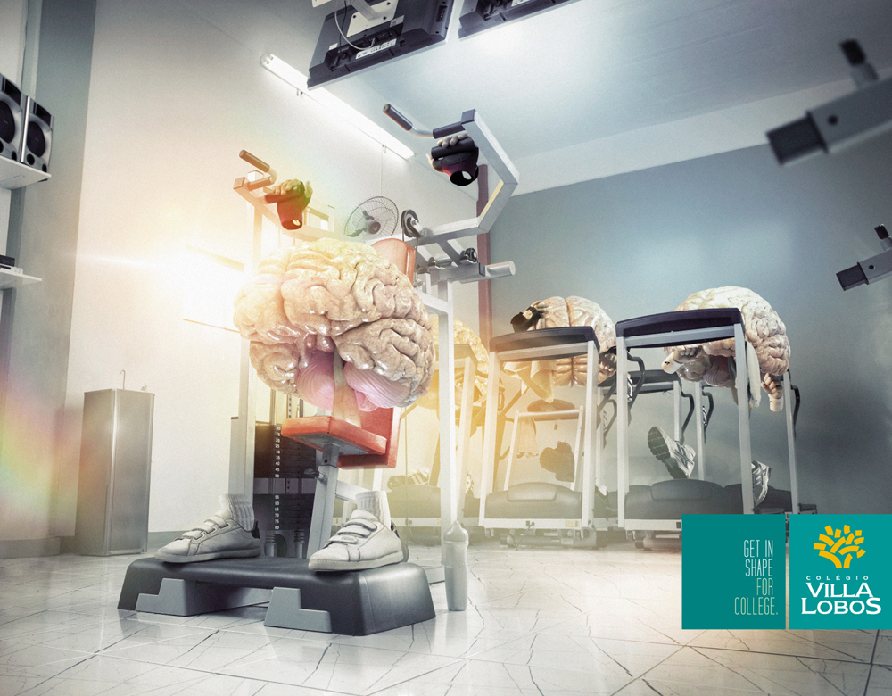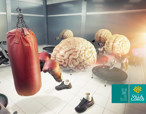 Colegio Villa Lobos: мозг тоже должен быть в формеПопулярный колледж в Южной Америке рекомендует студентам «тренировать» свой умБразильский образовательный центр Colegio Villa Lobos выпустил серию рекламных принтов под названием Get in shape for college (»Будь в форме для занятий в колледже»). Только тренировать Colegio Villa Lobos советует не бицепсы, а извилины головного мозга. Ум нуждается в «проработке» не меньше, чем пресс или спина. Он должен быть готов к тяжелым образовательным нагрузкам. На постерах, созданных бразильским креативным агентством Engenhonovo, изображены тренажерные залы, в которых мозги истязают себя тренировками. Для большей убедительности у каждого «спортсмена» даже есть кроссовки, спортивные перчатки, а кого-то и боксерские. К тренировке мозга нужно относиться серьезно. Ведь ему столько нужно решать и выполнять. Поэтому Colegio Villa Lobos советует привести мозг в форму и подготовить в себе настоящего атлета. А условия для качественной тренировки колледж гарантирует.