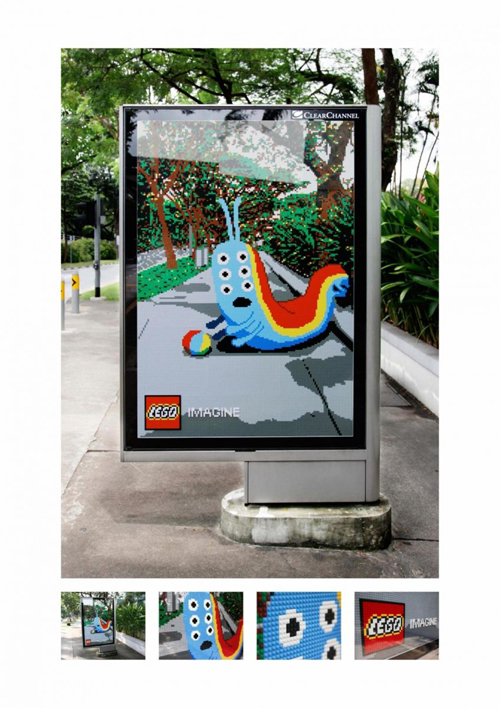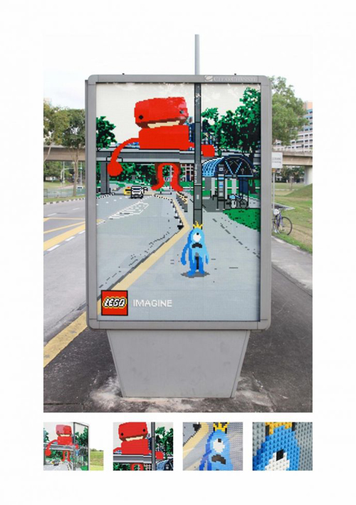 Lego выпускает на городские улицы монстров и китовБренд разместил новую креативную рекламу на щитах автобусных остановокКреатив - одна из отличительных черт рекламных кампаний Lego. В этот раз мировой бренд сделал фантастический и животный мир частью городского движения. Креаторы агентства Ogilvy Malaysia создали необычные постеры для рекламных щитов на автобусной остановке. Три щита "Кит", "Гусеница" и "Монстр", под общим названием "Imagine", представляют собой прозрачные окна, сквозь которые видно улицы. Вполне естественно в каждом окне смотрятся роботы, играющие в прятки, касатка, вынырнувшая на дорогу, и гусеница с мячом на тротуаре. Состав творческой группы: