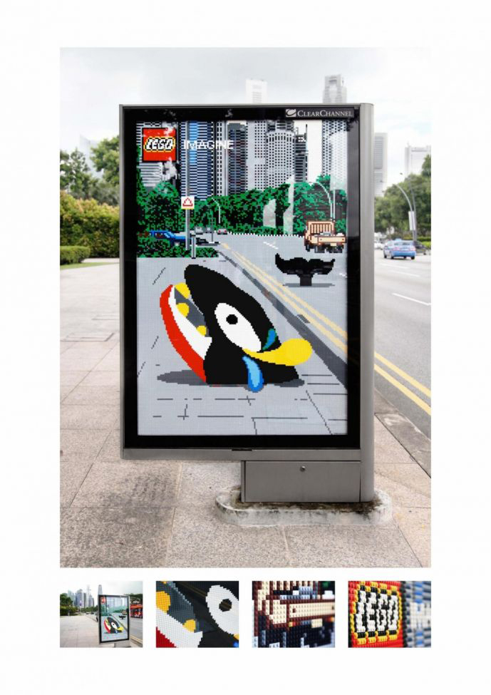 Lego выпускает на городские улицы монстров и китовБренд разместил новую креативную рекламу на щитах автобусных остановокКреатив - одна из отличительных черт рекламных кампаний Lego. В этот раз мировой бренд сделал фантастический и животный мир частью городского движения. Креаторы агентства Ogilvy Malaysia создали необычные постеры для рекламных щитов на автобусной остановке. Три щита "Кит", "Гусеница" и "Монстр", под общим названием "Imagine", представляют собой прозрачные окна, сквозь которые видно улицы. Вполне естественно в каждом окне смотрятся роботы, играющие в прятки, касатка, вынырнувшая на дорогу, и гусеница с мячом на тротуаре. Состав творческой группы: