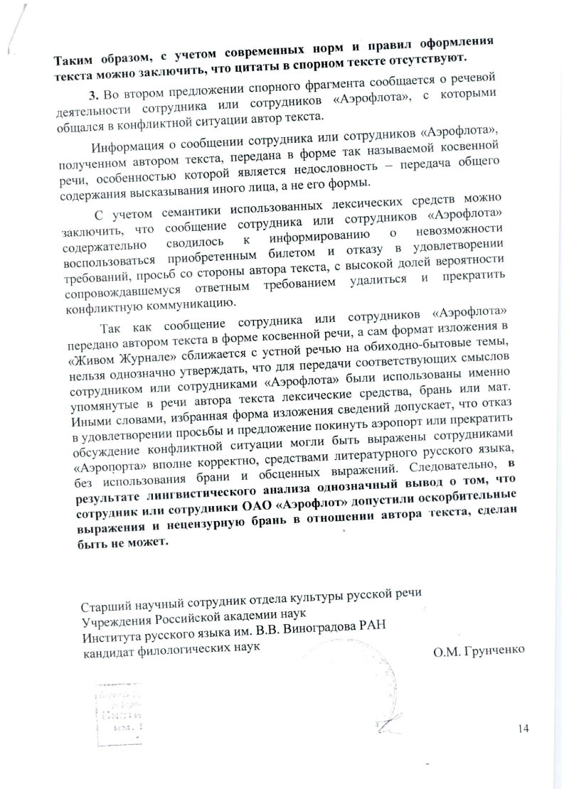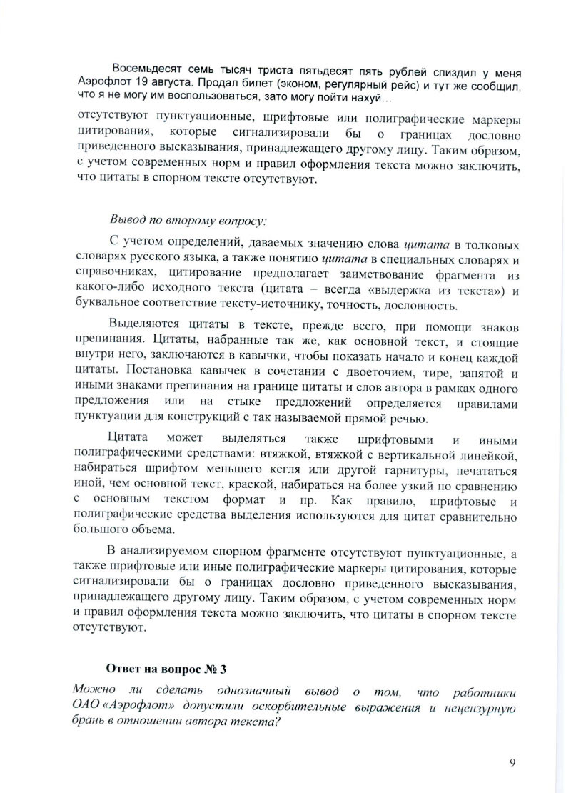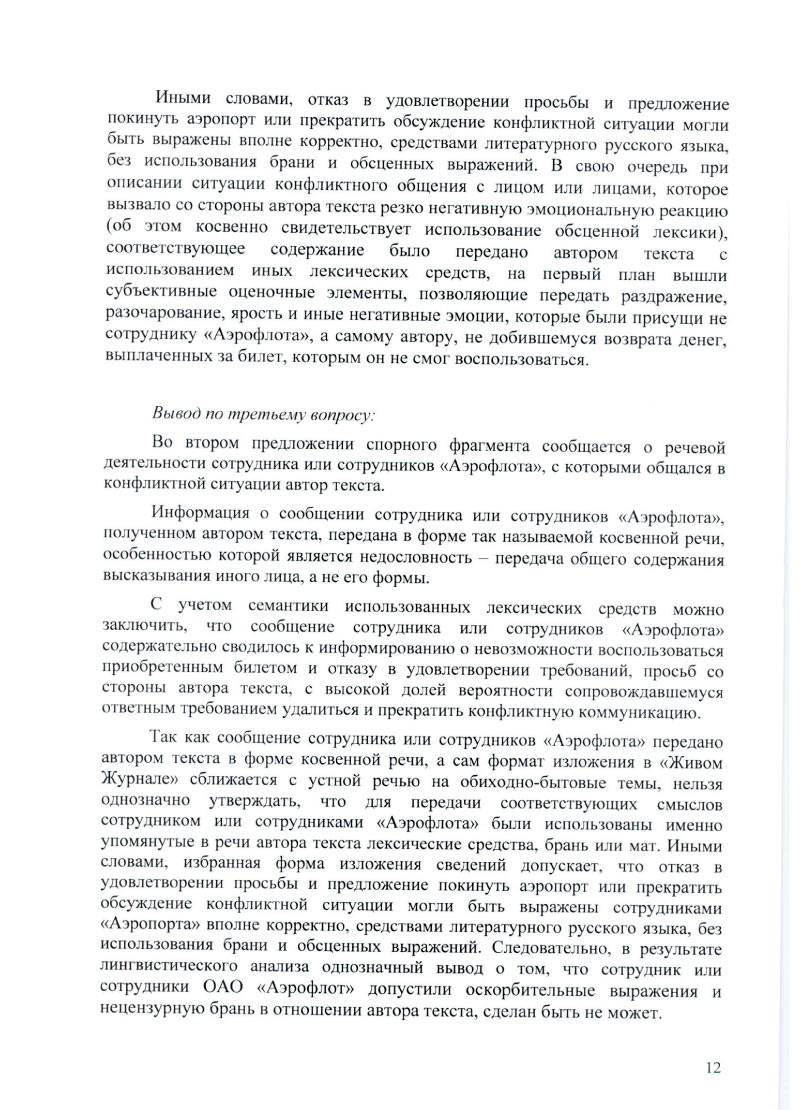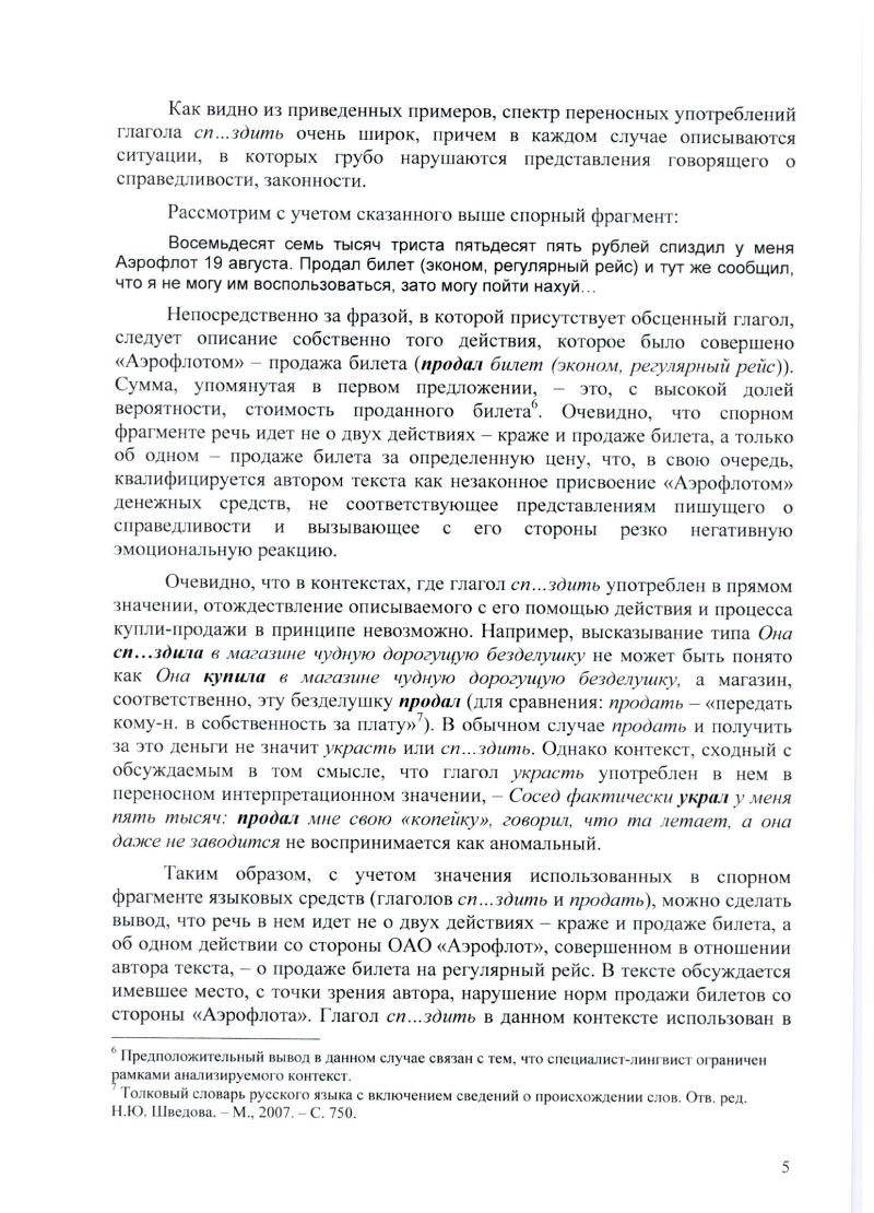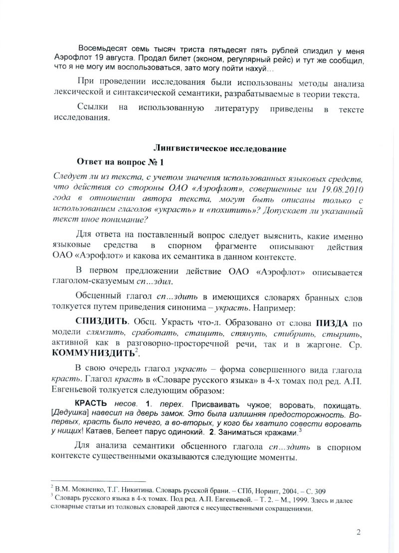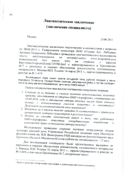 Лебедев заказал лингвистическую экспертизу своего ЖЖ перед судом с «Аэрофлотом»Экспертиза показала, что матерный глагол использовался в переносном смысле, а цитаты в тексте отсутствуют Авиакомпания «Аэрофлот» подала на Лебедева в суд 17 марта 2011 года. Она требует от него опровержения «сведений, не соответствующих действительности и порочащих деловую репутацию компании» и компенсации в размере 42 тысячи рублей за госпошлину и судебные издержки. Конфликт с «Аэрофлотом» начался в августе 2010 года. Как объясняет Лебедев, ему продали авиабилет после окончания регистрации на рейс, и он оказался недействителен. «Искренне считая, что эта операция называется как раз «спи*дить деньги» я написал несколько постов, требуя вернуть деньги обратно. В том числе пригласил читателей поучаствовать в жаблении логотипа национального авиаперевозчика», - рассказывает он в блоге. В сентябре компания вернула ему деньги, и конфликт был исчерпан.