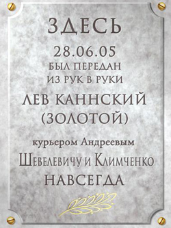 2005 год. Алексей Андреев привез Валерию Климченко и Александру Шевелевичу выигранного ими каннского льва и с грустью с ним прощается. Прошло шесть лет, и теперь у него есть свой собственный.