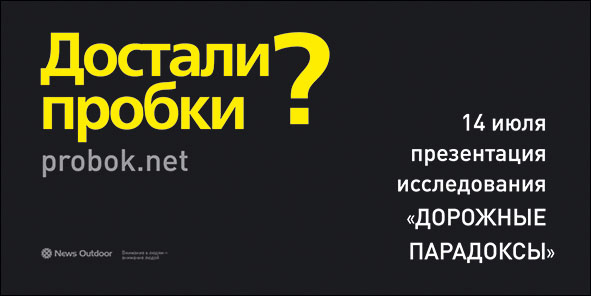Probok.net расскажут о потенциале увеличения пропускной способности московских улицNews Outdoor и проект Probok.net прорекламировали исследование «Дорожные парадоксы»В июле 2011 г. в Москве стартовал пилотный проект рекламно-информационной кампании, которую News Outdoor проводит совместно с общественной организацией «Московский центр борьбы с пробками» (проект Probok.net). В рамках кампании анонсируется презентация исследования дорожной сети, проведенного «Московским Центром по борьбе с пробками», и размещается серия постеров под названием «Дорожные парадоксы». На них указаны улицы Москвы, перекрытые для движения, к которым, по мнению экспертов центра, можно смело применить слово «парадокс». Москва уже давно стала столицей российских пробок. По данным Росстата, из-за пробок в Москве на перемещение по городу тратится вдвое больше времени в сутки, чем в среднем по России. А по данным британских аналитиков, Москва занимает одно из лидирующих мест в рейтинге городов мира с самыми продолжительными дорожными пробками. Максим Ткачев, управляющий директор News Outdoor: «Автомобильные пробки превратились в одну из наиболее актуальных проблем столицы, которые мешают комфортному проживанию в городе его жителей и не дают Москве превратиться в один из мировых финансовых центров. Мы поддерживаем стратегию «малых дел» и другие инициативы «Московского центра борьбы с пробками» и считаем, что только в тесном сотрудничестве городских властей и заинтересованных общественных организаций можно скорейшим образом улучшить ситуацию на дорогах». Александр Шумский, директор «Московского центра по борьбе с пробками»: «Мы благодарны правительству Москвы за его усилия по наведению порядка в области дорожного строительства и организации работы общественного транспорта. Безусловно, городу нужны новые магистрали и развязки. Однако в столице существует потенциал увеличения пропускной способности транспортной сети без ее дорогостоящей модернизации. Избавиться от большого количества заторов можно относительно просто и дешево: изменением режима работы светофора, организацией «кармана» или переносом остановки общественного транспорта на несколько сотен метров. Наиболее очевидным решением является ликвидация абсурдных ограничений проезда по уже построенным дорогам. Именно такого рода примеры легли в основу исследования «Дорожные парадоксы», которое мы представим 14 июля 2011 года. Надеемся, что наша работа не останется незамеченной для общественности и принесет пользу городу и его жителям». |