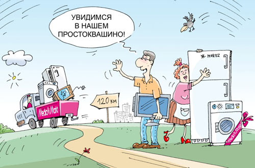 Media Markt рекламирует бесплатную доставку на дачуВо всех московских "мегамагазинах" немецкой сети электроники и бытовой техники Media Markt стартует акция "Дача". При покупке холодильника, стиральной машины, кухонной плиты или телевизора диагональю от 37 дюймов, клиент получает право на вывоз аналогичной старой техники в пределах 120 км от МКАД, например, на дачу, либо на перевоз старой техники в Москве, бесплатно. Media Markt стал первым ритейлером на российском рынке бытовой техники и электроники, предложившим подобную акцию. Она адресована всем тем, кто собирается сменить крупную бытовую технику на новую, а свою старую вывезти, например, в свой загородный дом, либо передать специалистам Media Markt для последующей переработки. Теперь у всех клиентов Media Markt есть возможность реализовать свои давние планы, сэкономив на перевозке крупногабаритных грузов, которая будет выполнена за счет Media Markt. Анна Трофимова, PR-менеджер Media-Saturn Russia: "Важно, что выгода для клиента выходит за рамки услуги бесплатной транспортировки техники. После покупки современных приборов в магазинах Media Markt экономия становится ежедневной: использование нового менее энергоемкого холодильника взамен старого 10-летней давности позволяет каждый год сберегать около 1500 тысяч рублей только на электричестве (из расчета средних расценок на электроэнергию по Москве), не говоря уже про общее повышения качества жизни от использования современной бытовой техники. Для того чтобы подчеркнуть основные преимущества акции, мы решили обратиться к нашей целевой аудитории в свойственном для философии бренда Media Markt креативном ключе - с помощью "Вредных советов москвичу" на страницах популярных еженедельников и соответствующих карикатурных иллюстраций к ним". Вредные советы москвичу Холодильники 1) Ломаете голову, как отвезти всю вашу рассаду в Чуприяновку? Поставьте все коробки с помидорами и горшочки с огурцами в вашу "Бирюсу" и приделайте к ней колесики - авось доедете! Хотя сотрудники Media Markt доставят все это совершенно бесплатно в ваше Простоквашино - если, конечно, вы купите новый холодильник с 7 по 21 июля. 2) Теща третий год пилит, чтобы вы отвезли старый "ЗИЛ" на дачу в Овражки? Купите бензопилу погромче, чтобы ее не слышать! Ах, вы хотите воспользоваться акцией Media Markt? Какая-такая акция? Не слышу вас! Плиты 1) Мечтаете отвезти вашу плиту 1965 года выпуска в свои угодья в Зубаревке, но ваш багажник не выдержит ее веса? Поставьте плиту на несколько пар роликовых коньков, прикрепив их скотчем, и пусть она едет за машиной на веревке. Только не пользуйтесь акцией Media Markt, по которой при покупке новой плиты c 7 по 21 июля старую отвезут на 120 км от МКАД бесплатно. 2) Хотите перевезти плиту на дачу в Вешняки, а машина в ремонте? Не беда. Одна тысяча воздушных шаров может поднять в воздух даже самую тяжелую плиту. Осталось только понять, как сделать так, чтобы на них по пути не садились птицы. А воспользоваться акцией Media Markt и без вас все хотят! 3) Жалко тратить целый день и здоровье на то, чтобы погрузить и увезти старую плиту в Перещапово? Да черт с ней, с плитой. Да и вообще - лучше не ездите больше на дачу. Свежий воздух есть и на балконе! А про бесплатную доставку старой плиты на дачу при покупке новой в Media Markt мы вам ничего не расскажем! Телевизоры 1) Хотите отвезти старый телевизор на фазенду в Подлипки, чтобы теща молча 
