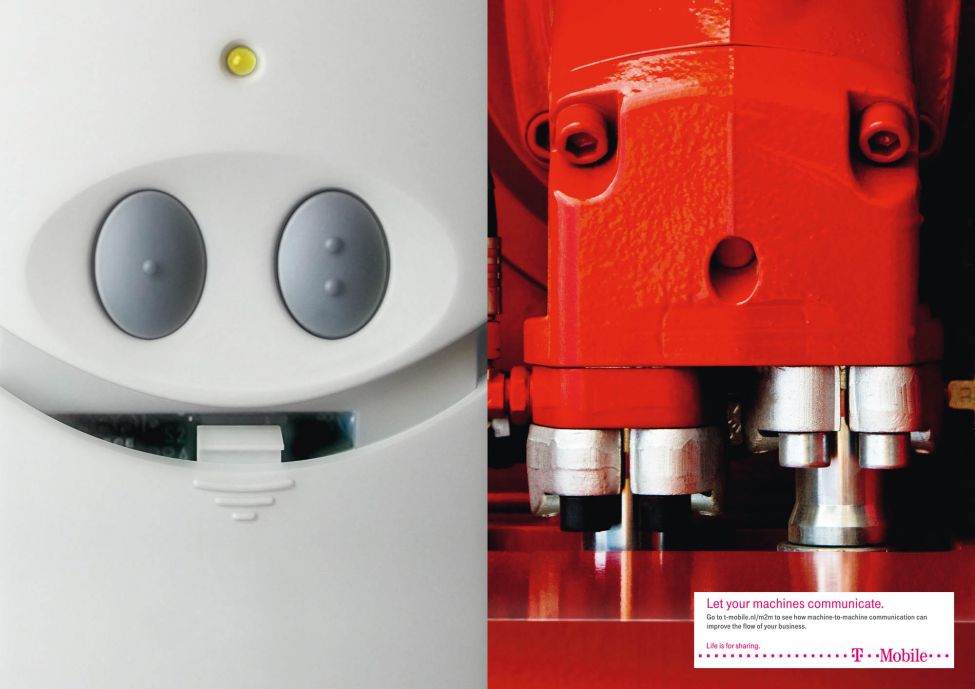 T-Mobile углядел мимику в автоматахВ своей новой кампании сотовый оператор заставил неодушевленные предметы общатьсяРекламная кампания сотового оператора T-mobile под названием Let your machines communicate ("Дай пообщаться своим автоматам") включает в себя три принта с изображением таких привычных бытовых вещей, как кулер, радио, кофемашина и так далее. Что примечательно, креаторы из агентства Publicis Amsterdam смогли разглядеть в совершенно неодушевленных вещах привычного быта нечто такое человеческое, как диалог. Напомним, что в марте американская телекоммуникационная компания AT&T приобрела T-Mobile USA, подразделение Deutsche Telekom AG. Стоимость сделки составила примерно в 39 миллиардов долларов. Соглашение было одобрено советами директоров обеих компаний. Приобретение T-Mobile USA обеспчило AT&T оптимальное сочетание сетевых активов. Кроме того, обе компании решают проблему исчерпания беспроводного диапазона. В результате сделки Deutsche Telekom получило 8% акций AT&T и место в совете директоров.