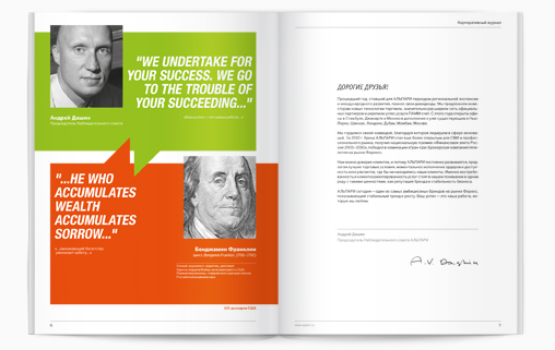 Graphic Productions возвращает Alpari к диалогу с деньгамиGraphic Productions продолжает концентрировать внимание на создании визуальных коммуникаций для финансового сектора. Агентство второй год подряд разрабатывает дизайн корпоративного журнала Alpari для сотрудников, клиентов и партнеров компании. Успешная концепция "диалог с деньгами", утвержденная в прошлом году, осталась неизменной. Топ-менеджеры Alpari разговаривают с деньгами на одном языке, и, что интересно, обладают удивительным внешним сходством с персонажами, изображенными на банкнотах. В журнале отражены достижения и масштабы роста Alpari за последний год, география офисов и планы развития на будущее. Обложка выполнена по образцу ценных бумаг и содержит водяные знаки. Журнал обернут обечайками, что добавляет реалистичности выбранному образу. ![]() ![]() ![]() ![]() ![]() ![]() ![]() ![]() ![]() ![]() ![]() ![]() ![]() |