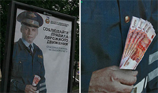 ГАИшник на социальном плакате поменял рубли на долларыПетербуржцы настойчиво издеваются над рекламой ГИБДДПетербуржцы продолжают издеваться над сотрудником ГИБДД, изображенным на социальной рекламе, сообщает Fontanka.ru. Фотографии сотрудника ГИБДД, призывающего соблюдать правила дорожного движения, сначала дали в руку пачку пятитысячных купюр. После того, как купюры были убраны, неизвестные не успокоились и приклеили вместо рублей доллары. Постер с социальной рекламой размещен на Большой Пушкарской улице.