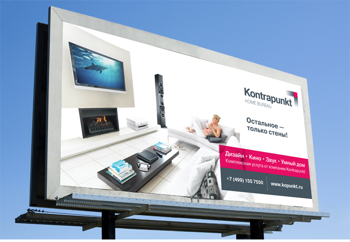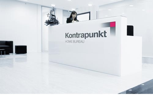 FRONT:DESIGN поставили точкуБренд-ателье представило айдентику для компании Kontrapunkt Home BureauСтоличное бренд-ателье FRONT:DESIGN разработало айдентику для компании Kontrapunkt Home Bureau - агентства, предоставляющего услуги по оформлению дизайна интерьера. Как поясняют представители FRONT:DESIGN, значение фонотипа "контрапункт" с латинского - это точка против точки, а в музыкальной терминологии - это одновременное сочетание двух или более самостоятельных мелодических голосов. Эти смыслы и были отражены в графике торгового знака: две динамичные линии, сходятся в одной яркой точке. Прагматичное шрифтовое решение логотипа, по замыслу его создателей, подчеркивает европейский, технологичный характер бренда, а сочетание "холодного" серого и яркого малинового цветов, позволяют эффективно решать задачи коммуникации. В составе проекта был разработан дизайн представительских материалов, рекламных сообщений, оформлен офис продаж, фирменная одежда и транспорт. Состав творческой группы: