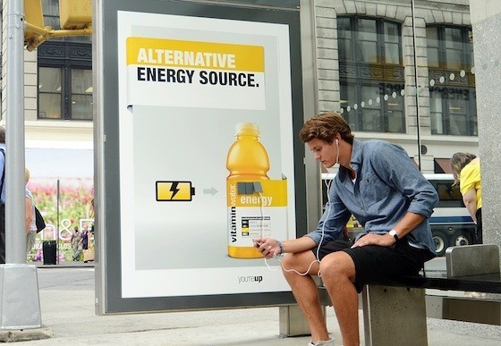 В рамках новой кампании бренда VitaminWater под названием You're UP, некоторые автобусные остановки в Нью-Йорке, Лос-Анджелесе, Чикаго и Бостоне предлагают 5-вольтовых USB-портов, которые позволяют зарядить любое совместимое устройство.