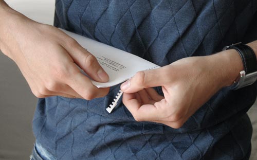 Фирменный стиль получился контрастным и выразительным. Строгая, черная снаружи папка оказывается яркой внутри. А паттерн, выполненный прозрачным лаком, добавляет "сочности".