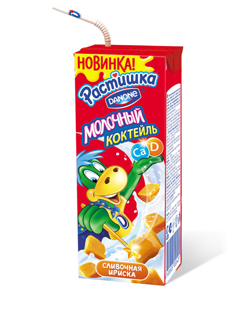 Компания Danone запускает молочный коктейль «Растишка» в упаковке «Тетра Пак»В сентябре 2011 года компания Danone запускает молочный коктейль "Растишка". Напиток подходит для питания детей дошкольного и школьного возраста. Молочный коктейль от "Растишки" - это первый продукт компании Danone, выпущенный в многослойной упаковке Тетра Пак. «Дизайн упаковки молочных коктейлей «Растишка» разработан брендинговым агентством Wellhead. Асептическая упаковка компании Тетра Пак - это шестислойный комбинированный материал, который на 75% состоит из картона, на 20% - из слоев полиэтилена и на 5% - из алюминиевой фольги. Каждый слой упаковки выполняет свою функцию. Картон-основа обеспечивает упаковке жесткость и удобную для хранения и транспортировки форму, слои полиэтилена предохраняют от влаги и обеспечивают герметичность, слой алюминиевой фольги защищает от света и кислорода. Таким образом, многослойный асептический материал обеспечивает длительное безопасное хранение продукта, создавая эффективный барьер против бактерий и других внешних нежелательных воздействий. Данная упаковка и процесс ультрапастеризации, который является наиболее щадящим способом обработки молока, позволяет хранить молочный коктейль от "Растишки" при температуре от 0 до 25 градусов. Кроме того, ультрапастеризация позволяет сохранить органолептические характеристики, состав и питательные свойства молока. Молочный коктейль изготовлен только из натуральных ингредиентов, и представлен тремя вкусами: "Клубника-Земляника", "Банан-Клубника" и "Сливочная Ириска".