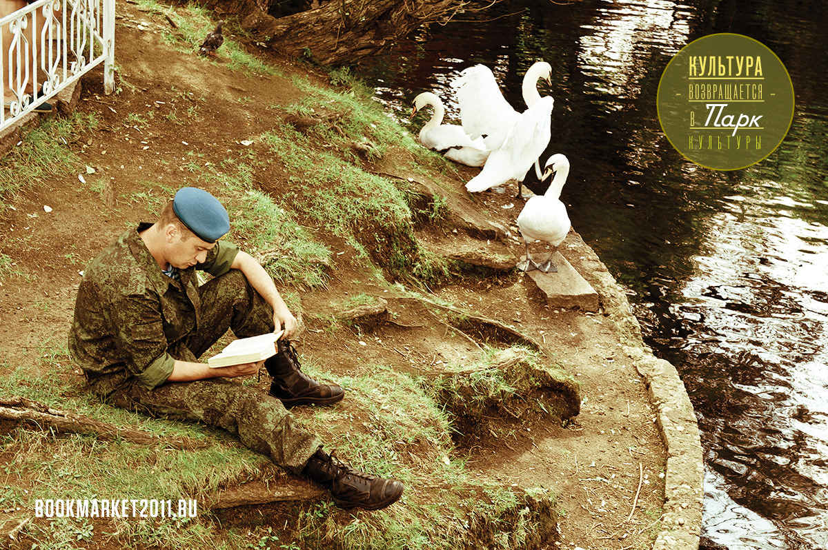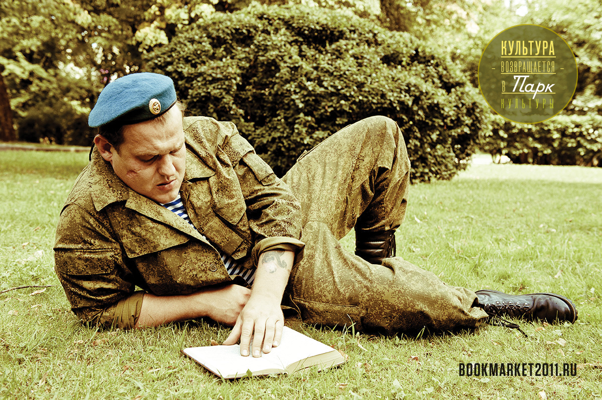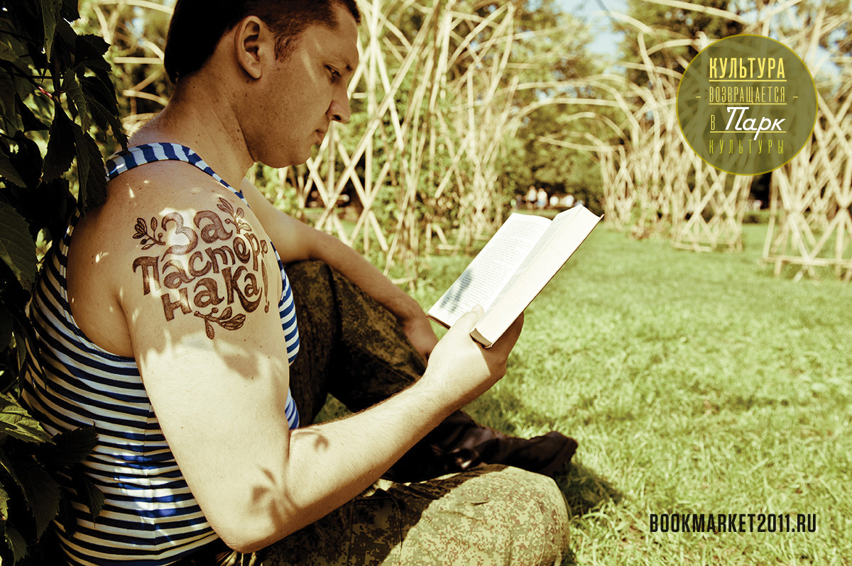 Литературный фестиваль «Букмаркет» выложил в своем Facebook-аккаунте рекламный ролик, в котором несколько десантников в Парке Культуры им. Горького читают стихотворение Бориса Пастернака «Во всем мне хочется дойти». Ролик заканчивается слоганом «Культкра возвращается в Парк Культуры». Креативная концепция рекламной кампании разработана агентсвом SLAVA. На настоящий момент выложенный менее суток назад ролик набрал около десяти тысяч просмотров.