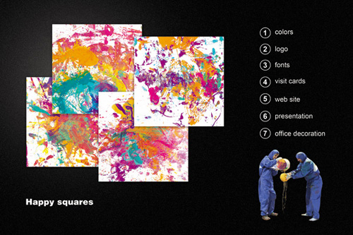 Удовольствия, которые перекочевали в цветные квадраты, теперь используются как паттерны и фоны для любых элементов фирменного стиля.