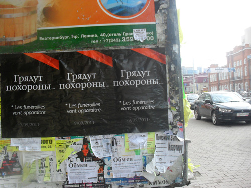 В Екатеринбурге рекламисты похоронили ресторанНа прошлой неделе Екатеринбург оказался заклеен плакатами, которые предлагали жителям города готовиться к таинственным похоронам. Параллельно на центральных улицах города появились несколько перетяжек с таким же содержанием. На черном фоне белыми буквами было написано: "Грядут похороны… Les funerailles vont apparaitre 9/09/2011". Тема этой тизерной кампании активно обсуждалась на городских форумах, пользователи пытались понять о каких похоронах идет речь. Количество плакатов ежедневно увеличивалось, а вот перетяжки демонтировали без каких-либо уведомлений, предупреждений и согласований. Перетяжки такого содержания чуть было не вызвали настоящий скандал и по одной из версий их сняли по требованию контрольных органов администрации Екатеринбурга, единственных, имеющих на это основания. Причина простая - в анонсированный рекламой день (9 сентября) в Свердловскую область приедет премьер-министр РФ Владимир Путин. В его программе - участие в выставке вооружения "Russian ExpoArms" в Нижнем Тагиле, и никаких похорон. В следующую после демонтажа ночь перетяжки были заменены, и в новых раскрывалась суть тизера. 9 сентября в 21-00 состоятся похороны ресторана французской кухни в центре города. Как будут проходить похороны, не уточняется, но видимо, это будет настоящая траурная процессия. |