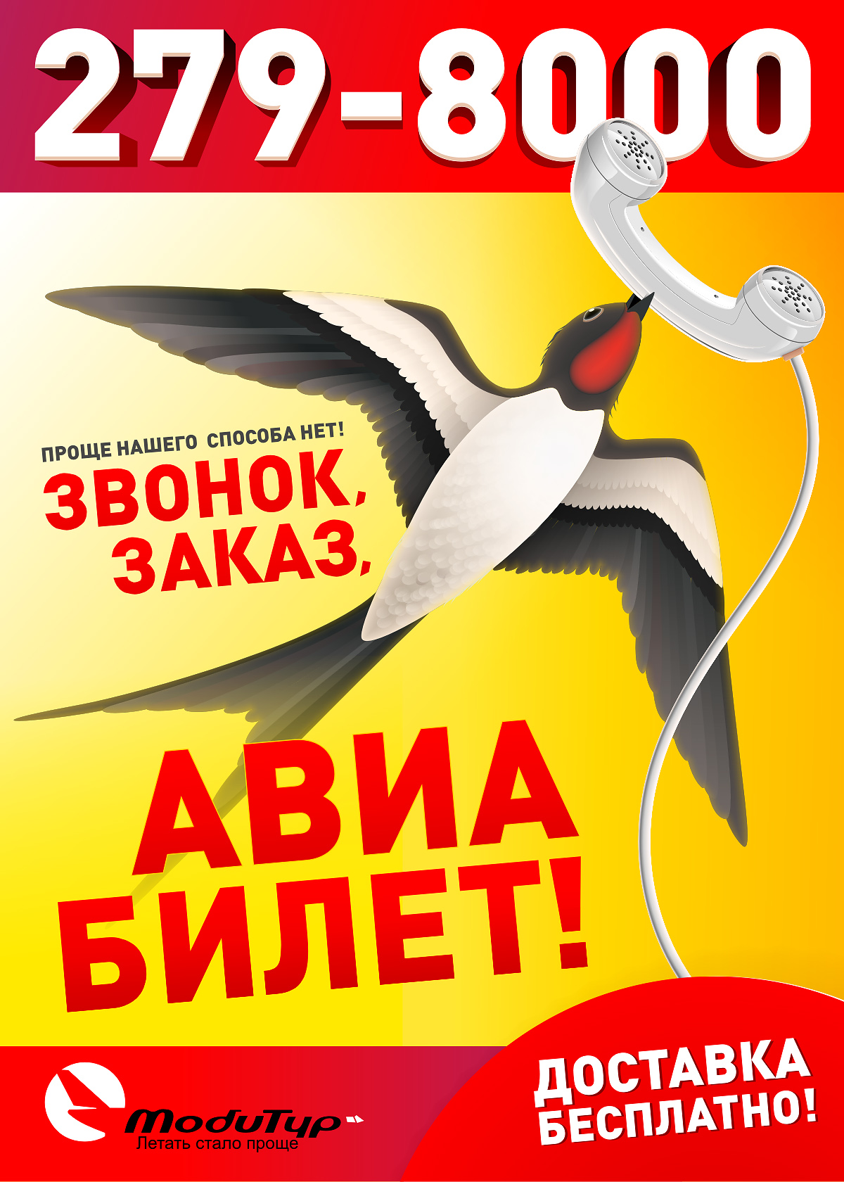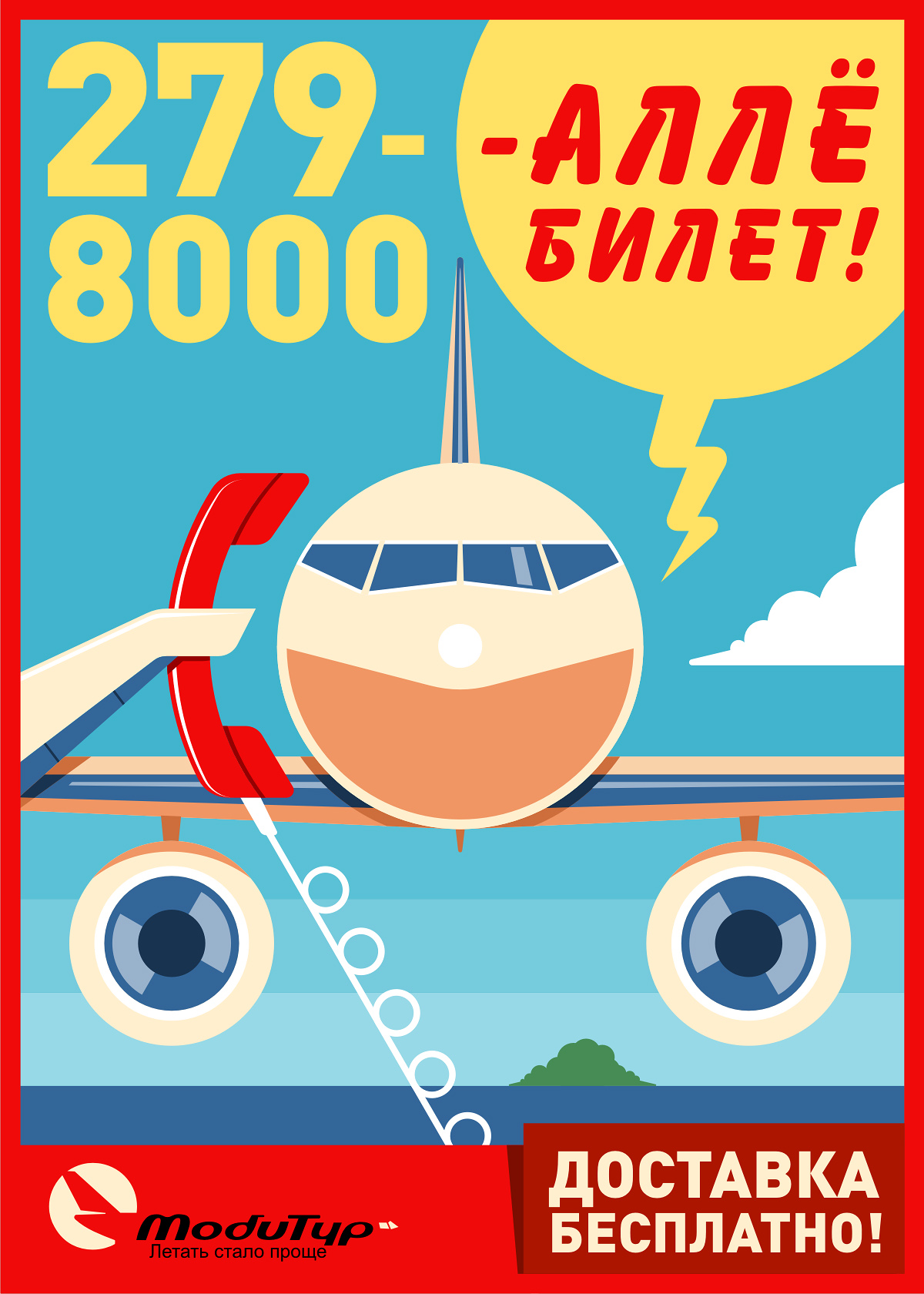 В «АТАКУ!» за билетамиРекламная кампания для мобильной кассыРекламное агентство "АТАКА!" разработало серию плакатов для наружной рекламы мобильной кассы "МобиТур", работающей на рынке Краснодарского края. Основной задачей для создания маркетинговой коммуникации было повышение уровня продаж авиа- и железнодорожных билетов по телефону. Агентство "АТАКА!" представило креатив и дизайн для четырех рекламных плакатов, которые размещались поочередно в течение 4-х месяцев в Краснодаре в "горячий" весеннее-летний сезон. Все плакаты выполнены в разной стилистике. В основу некоторых иллюстраций положен стиль ретро-фантастики, киноафиш 60-х, комиксов. Состав творческой группы: