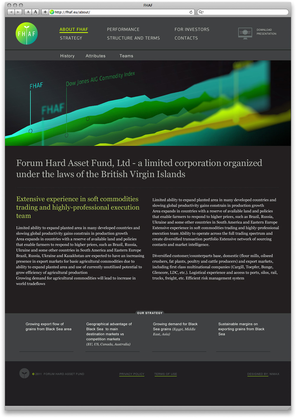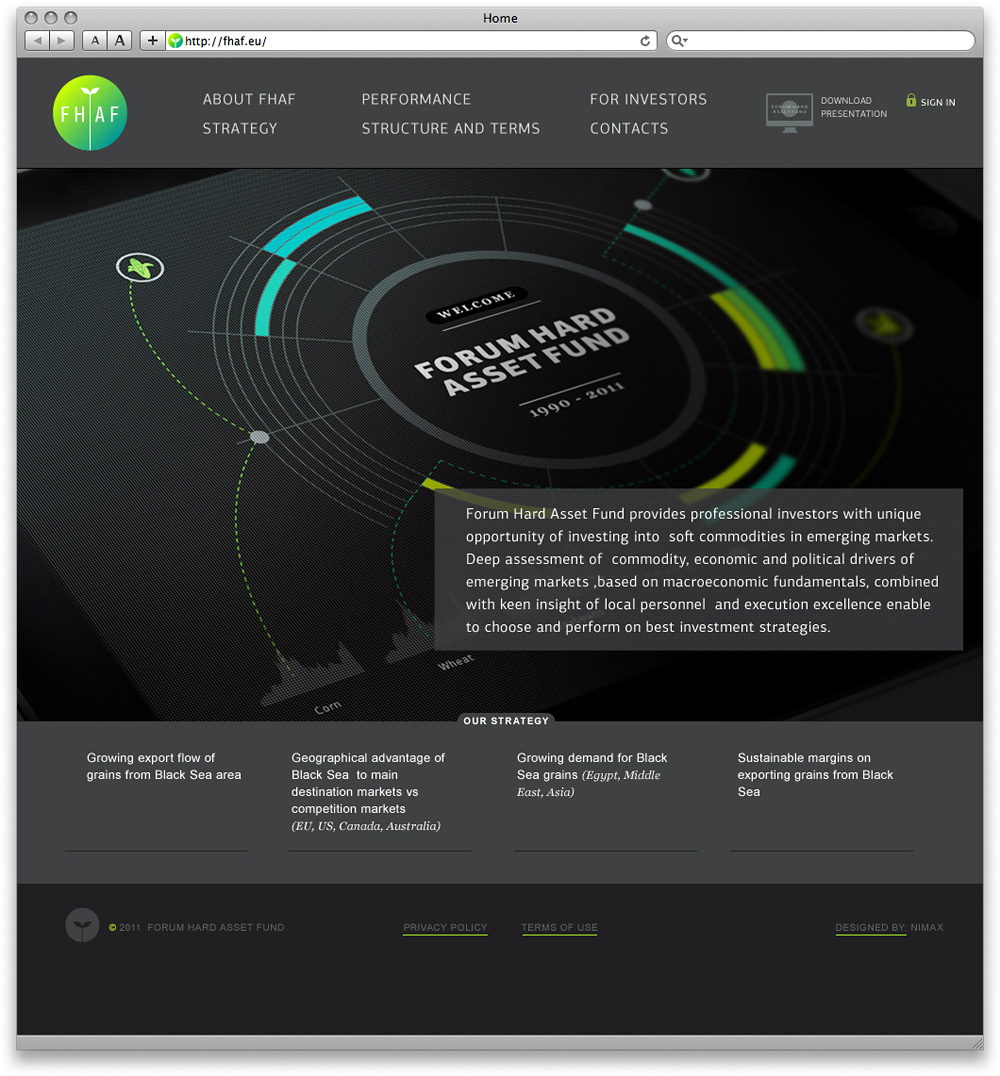 Айдентика для сырьяВ агентстве Nimax завершили работу над айдентикой и веб-сайтом для Forum Hard Asset Fund - фонда, инвестирующего в soft commodities - сырье, которое не добывается, а выращивается: кофе, какао, сахар, пшеница и пр. Фонд работает на иностранном рынке и на иностранных клиентов.