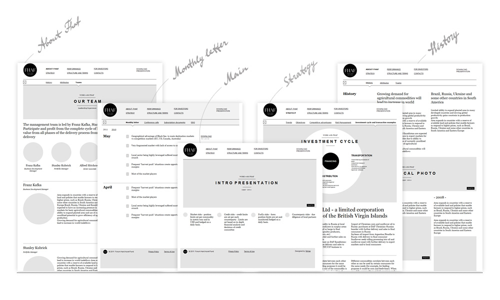 Используя предварительное прототипирование, в Nimax проработали структуру и навигацию сайта, компоновку страниц и функционал закрытого раздела для инвесторов, в котором публикуются ежемесячные отчетные материалы.Так как весь контент был предоставлен заказчиком еще до начала работы, в прототипе сразу были размещены актуальные материалы, хотя обычно на этом этапе размечается только расположение контейнеров.