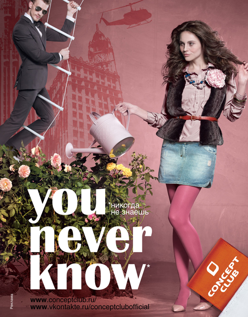 bazina.sass+ сделало рекламу для девушек, у которых вечно что-то случаетсяАгентство представило кампанию для сети магазинов Concept ClubСеть магазинов молодежной одежды Concept Club существует на российском рынке пять лет. В 2011 году руководство компании выбрало в качестве креативного партнера креативный бутик bazina.sass+ . "В жизни молодых девушек, для которых создает свою одежду Concept Club, вечно что-то случается. - рассказывает креативный директор Наталья Базина. -Она может прийти в институтскую библиотеку, а там... принц (принцы же где-то встречают своих обычных девушек). Или вдруг будут искать новую подружку Джеймсу Бонду, а тут наша героиня, такая смелая и романтичная одновременно. Ну а если представить, что в город явится огромный Кинг Конг... Главное - быть готовой ко всему и всегда." Этой осенью стартует кампания You never know (Никогда не знаешь). Она представляет собой серию из трех сюжетов, адаптированных под разные носители (принт, аутдор, витрины магазинов). В дальнейшем идея You never know будет реализована в Интернете и в BTL-акциях. Состав творческой группы
