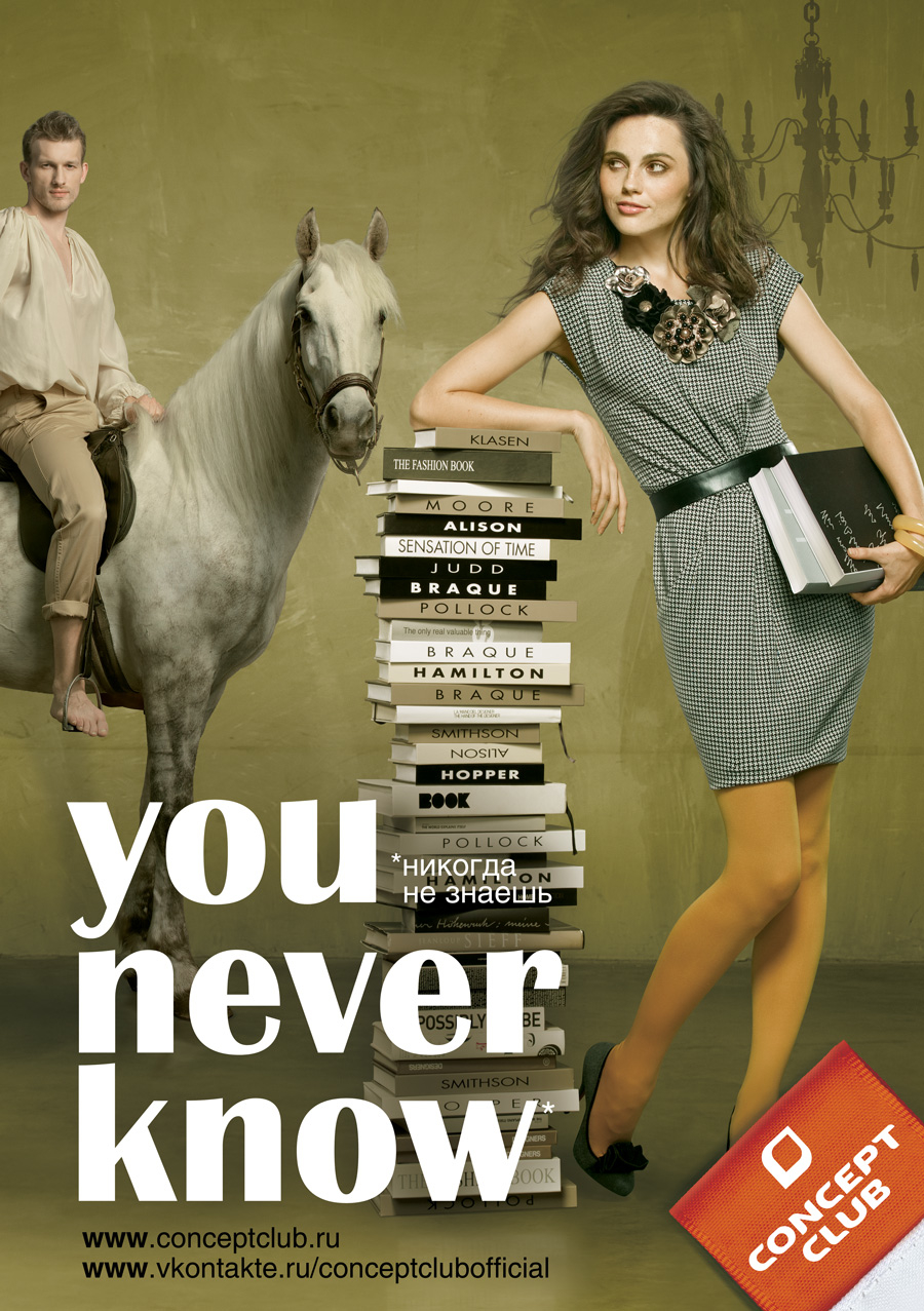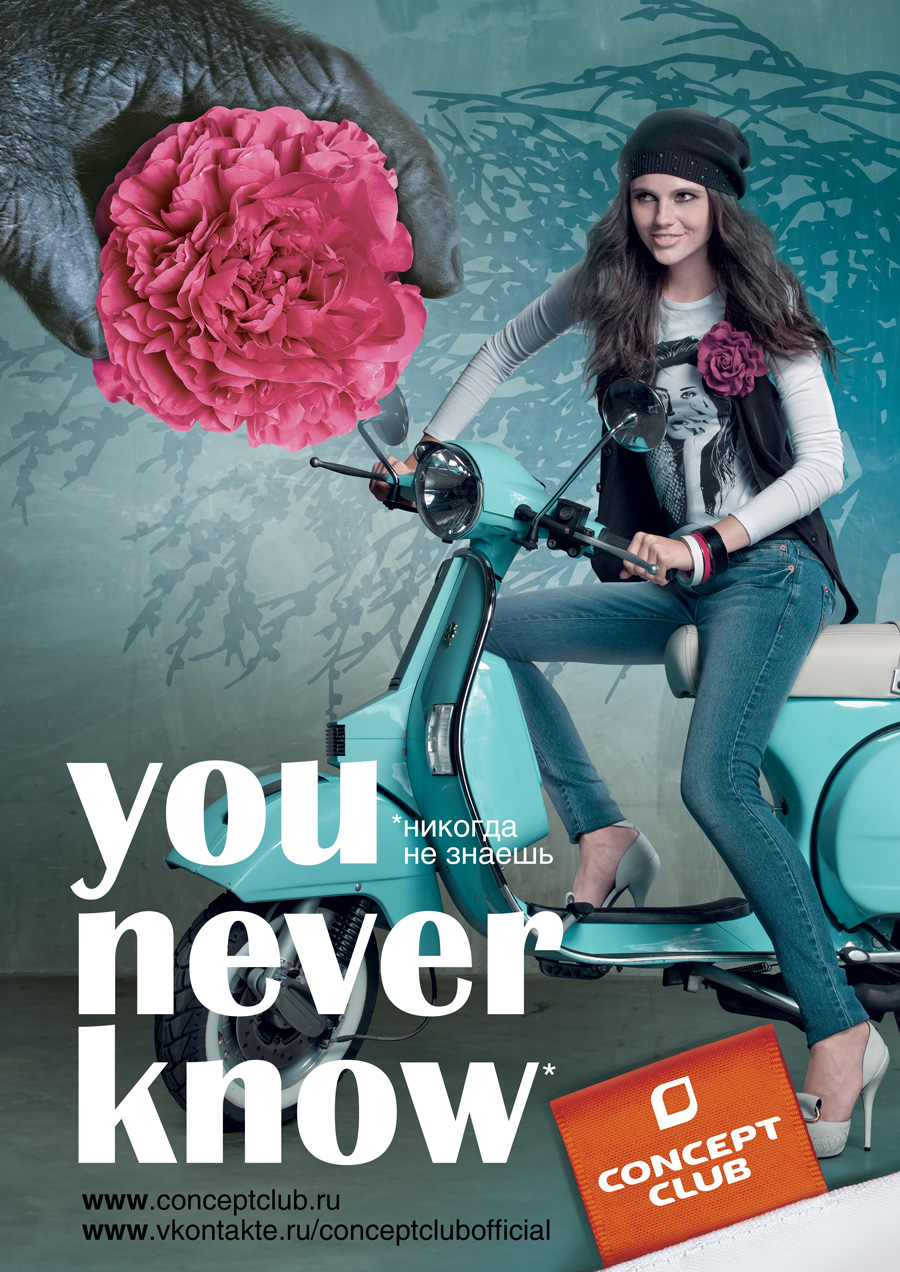 bazina.sass+ сделало рекламу для девушек, у которых вечно что-то случаетсяАгентство представило кампанию для сети магазинов Concept ClubСеть магазинов молодежной одежды Concept Club существует на российском рынке пять лет. В 2011 году руководство компании выбрало в качестве креативного партнера креативный бутик bazina.sass+ . "В жизни молодых девушек, для которых создает свою одежду Concept Club, вечно что-то случается. - рассказывает креативный директор Наталья Базина. -Она может прийти в институтскую библиотеку, а там... принц (принцы же где-то встречают своих обычных девушек). Или вдруг будут искать новую подружку Джеймсу Бонду, а тут наша героиня, такая смелая и романтичная одновременно. Ну а если представить, что в город явится огромный Кинг Конг... Главное - быть готовой ко всему и всегда." Этой осенью стартует кампания You never know (Никогда не знаешь). Она представляет собой серию из трех сюжетов, адаптированных под разные носители (принт, аутдор, витрины магазинов). В дальнейшем идея You never know будет реализована в Интернете и в BTL-акциях. Состав творческой группы