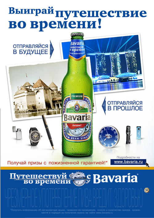 EFES, ICON и Instinct изобрели машину времени BavariaАгентство интерактивных коммуникаций ICON c 15 июня по 15 октября 2011 года реализует для бренда Bavaria федеральную промо-кампанию "Путешествуй во времени с Bavaria". Согласно креативной концепции, предложенной специалистами двух агентств- ICON и РА Instinct, каждый потребитель торговой марки может стать самым настоящим путешественником во времени, перемещаясь то в прошлое, то в будущее. Остается только запустить машину времени Bavaria, как она сразу же перенесет любителей пива в другой временной отрезок. Именно там вольным странникам удастся проследить, как быстро все меняется в нашей жизни, а пиво Bavaria остается в любые времена верным своему вкусу и характеру. "Промо-акция напоминает ЦА о высоком качестве продукта под брендом Bavaria, стимулирует к пробной покупке и позволяет повысить продажи пива в период наиболее активного покупательского спроса",- говорит креативный директор агентства ICON Данила Бавченков. Чтобы принять участие в акции необходимо купить пиво Bavaria в стеклянных бутылках или алюминиевых банках объемом 0,5 литра в специальной промо-упаковке. Главный приз акции - поездка в отель "будущего" или отдых на территории средневекового замка "прошлого". Для особо активных участников акции предусмотрены гарантированные призы. Промо-акция "Путешествуй во времени с Bavaria" поддержана рекламной кампанией в Интернет, местах продаж и на носителях наружной рекламы.