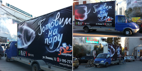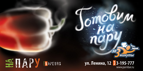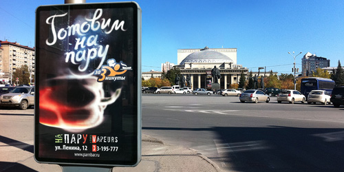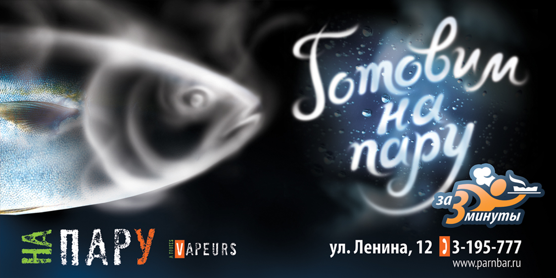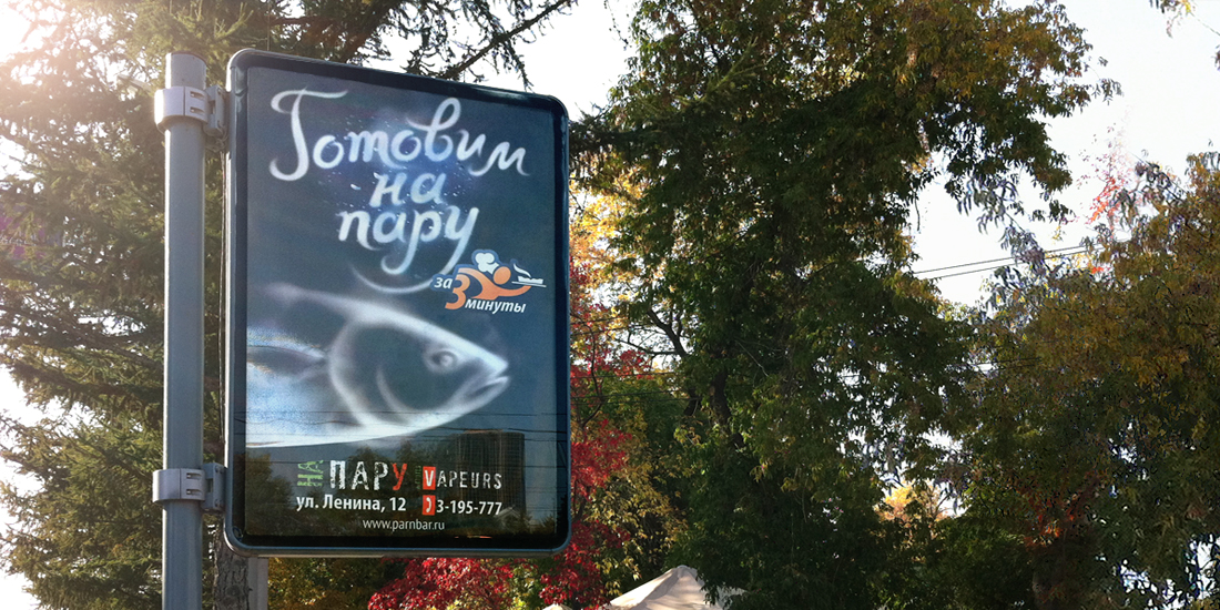Ресторан «На пару» обрел креатив в студии «Надым & Кучин»Нестандартное решение для продвижения первого в России ресторана "A Toutes Vapeurs" ("На пару") от студии креатива и дизайна "Надым & Кучин". По французской франшизе в Новосибирске открылся первый в России ресторан "A Toutes Vapeurs", в котором готовят на пару высокого давления. Приготовление блюд занимает не более трех минут. Задача - донести до целевой аудитории ключевое сообщение: "Мы готовим на пару". Основным каналом коммуникации стала наружная реклама и нестандартное размещение - мобильный билборд с генератором пара. Так мы решили показать пар не только на картинке, но и в живую.