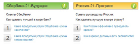 Сбербанк запускает краудсорсинг-проектСбербанк начинает сбор народных идей и мненийСбербанк запускает проект краудсорсинга, с помощью которого неограниченное число людей смогут высказать идеи относительно стратегического развития компании. Термин «краудсорсинг» (от англ. crowd – скопление, множество, толпа) означает вовлечение заинтересованных людей «из толпы» в совместную работу. Сбор народных идей и мнений происходит на сайте sberbank21.ru. Все вопросы обсуждаются в тематических сообществах. Пользователи со статусом «Участники» участвуют в опросах и дискуссиях в сообществе «СБ-170» на платформе «Профессионалы.ру». «Советники» занимаются анализом и доработкой конкретных советов на платформе WikiVote! «Эксперты» принимают участие в процессе синтеллектуального краудсорсинга на платформе Witology. Результатом коллективной работы станут три доклада: «Сбербанк-21-Будущее», «Россия-21-Прогресс» и «Инновации-21-Краудсорсинг». Они будут представлены 12 ноября на большой конференции «Сбербанк-170». Самые активные участники презентуют доклады руководству Сбербанка и приглашенным экспертам. Ожидается, что мероприятие посетят премьер-министр Владимир Путин, инвестор Джордж Сорос и глава Microsoft Билл Гейтс. Победителям обещают приз в виде делового завтрака с главой Сбербанка Германом Грефом и ценные призы. |
