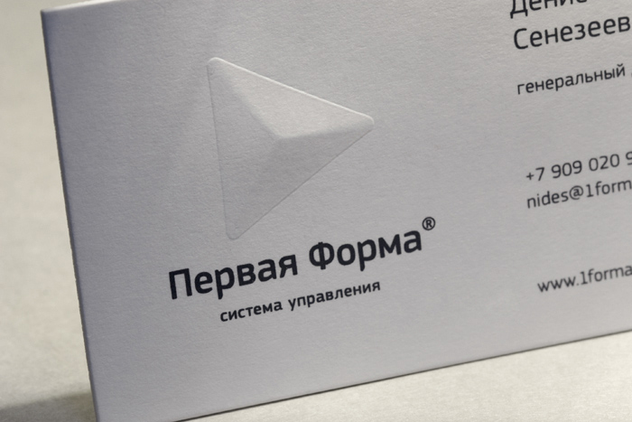 FRONT:DESIGN разработало бренд «Первая форма»Бренд-ателье FRONT:DESIGN разработало платформу позиционирования, визуальные элементы, брендбук и полиграфические материалы бренда «Первая форма» — системы управления бизнес-процессами. «ПЕРВАЯ ФОРМА» – это возможность находиться в трех временных пространствах: учитывать опыт прошлого, оценивать сегодняшнюю реальность и видеть будущее –качества, ведущие бизнес к успеху. Пользователь системы управления обретает фантастическую способность: находясь в настоящем, он может заглянуть в прошлое (статистика, переписка сотруд¬ников, бизнес-структура) и наметить план будущих действий. Логотип «Первой формы» наглядно раскрывает суть позиционирования бренда: это одновременно треугольная кнопка play, трехмерная система координат, указатель направления. Символика треугольника и трехгранной пирамиды так часто связывается со стабильностью, ростом и успехом, что было вполне логично выбрать ее в качестве логотипа. В оформлении имиджевых материалов «Первой формы» треугольник используется в качестве базовой формы для фирменной графики и модульной сетки макетов.
