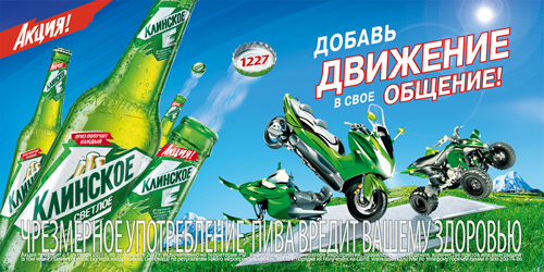 «Клинское» привлекает молодежь на сайт tusovka.ruКреатив рекламной кампании разработан агентством GreySun InBev запустила в ротацию новый промо-ролик пива «Клинское». Креативная концепция рекламной кампании разработана агентством Grey. Посредством этой рекламной кампании производитель пива планирует привлечь пользователей на сайт tusovka.ru. «Целевая аудитория - компания молодых ребят (18-25 лет), оптимистично смотрящих на жизнь, в их жизни играют большое значение друзья и общение», - сообщили Sostav.ru в компании СанИнбев Причем к друзьям относятся не только ребята из ближайшего окружения, а все, с кем легко найти общий язык, с кем весело и интересно. Для этой аудитории движение – образ жизни. Поэтому бренд дарит призы, с которыми можно общаться не только весело, но и активно. Слоган компании – «Добавь движения в свое общение!». «Механика акции проста – находишь код под крышкой, регистрируешь на сайте tusovka.ru или отправляешь смс и получаешь гарантированный приз, а также участвуешь в розыгрыше призов другого уровня. Призов очень много! Гарантированный приз - рингтон "в стиле К", а каждую минуту разыгрываются деньги на мобильный телефон. В рамках промо разыгрываются также каждый час отличный Сноу-тьюб, каждый день сенсорный смартфон и каждую неделю планшетный компьютер. Самое главное - в промо Клинского главных приза три! И потребитель сам выбирает, за что он готов бороться – квадроцикл, скутер или снегоход. Далее участник копит баллы на приз, шансы выиграть увеличиваются, если друг дарит участнику свой код. Тогда он засчитывается не как 1, а как 2 балла. Это может быть стратегия для компании друзей. В режиме реального времени на сайте tusovka.ru можно отслеживать, сколько баллов накоплено у конкурентов, и оценивать свои шансы. Розыгрыш трех главных призов происходит раз в месяц», - добавляет представитель Sun InBev.
