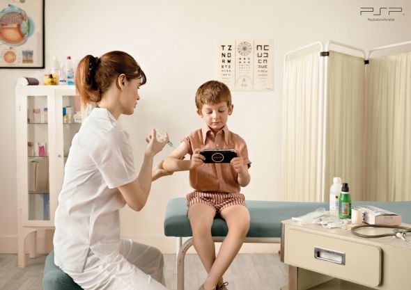 Серия принтов для новой рекламы Playstation PSP была подготовлена креативным агентством TBWA\ESPA?A Madrid. На обоих плакатах изображены дети, увлеченные новой приставкой настолько, что даже не замечают, как им делают прививки и обрабатывают раны.