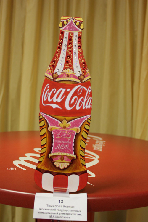Coca-Cola подвела итоги конкурса на лучший дизайн бутылкиИтоги были подведены на московском заводе Coca-Cola HellenicС августа по октябрь на всей территории России прошел конкурс на самую оригинальную идею оформления бутылки "Coca-Cola: 125 счастливых лет". В Москве и Московской области участие в конкурсе приняли члены молодежных объединений и студенты ведущих вузов: Московского государственного гуманитарного университета им. М.А.Шолохова, Московского института культуры и искусств, Московского художественно-промышленного института и других. Всего в адрес оргкомитета конкурса поступило свыше 100 оригинальных работ. Семь авторов лучших работ в Московском регионе получили право участвовать в финале всероссийского конкурса и бороться за право получить главный приз - поездку в музей Coca-Cola в Атланте, США. Главный победитель будет выбран путем голосования экспертного жюри, в состав которого войдут ведущие специалисты в области маркетинга и внешних связей The Coca-Cola Export Corporation и Coca-Cola Hellenic в России. В этом году Сoca-Cola отметила 125 лет с того самого дня, когда 8 мая 1886 года фармацевт Джон Стит Пембертон из Атланты запатентовал Сoca-cola как универсальное лекарственное средство. Coca-Cola является одним из крупнейших мировых производителей безалкогольных напитков. В 2010 году Coca-Сola заняла третье место в рейтинге самых дорогих брендов мира по версии Interbrand. Ее торговая марка оценивается в 34,8 миллиарда долларов.