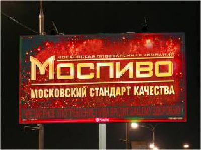 Главная задача, которую ставит перед собой Компания на сегодняшний день - попытаться сделать "МОСПИВО" главной региональной маркой. Ребрендинг "МОСПИВА" сопровождается появлением наружной рекламы на улицах столицы. В ней используется конструкция, способная мерцать и совершать колебательные движения за счет любого внешнего воздействия. Всего будет размещено 7 сторон. Первые подобные баннеры были сделаны Компанией для пива "Жигули Барное" в августе 2011 года.