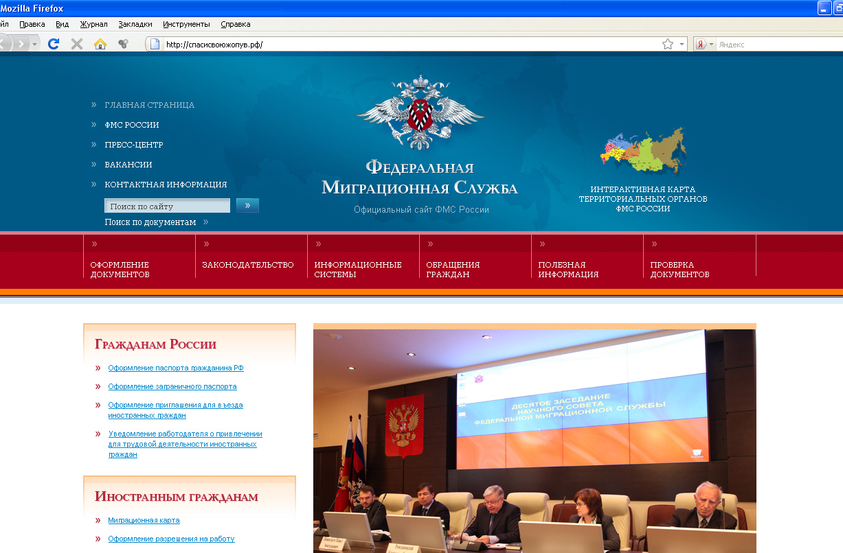 Для ФМС сделали ролик, призывающий человечество эмигрировать в СибирьПри этом в качестве одного из доменных имен, с которого загружается сайт, использовано спасисвоюжопув.рфВ Интернете появилось видео, рекламирующее услуги ФМС России. Ролик выполнен в стилистике, которую обычно использует студия My Duck's Vision, и посвящен предстоящей человечеству в 2012 году апокалиптической катастрофе, в результате которой самым безопасным местом для жизни на планете станет Сибирь. Сопровождаемое английскими субтитрами видео заканчивается ссылкой на домены спасисвоюжопув.рф и saveass.ru, при наборе которых в строке браузера пользователь оказывается на сайте Федеральной Миграционной Службы РФ. На настоящий момент загруженный 24 октября ролик набрал чуть менее сорока тысяч просмотров. |