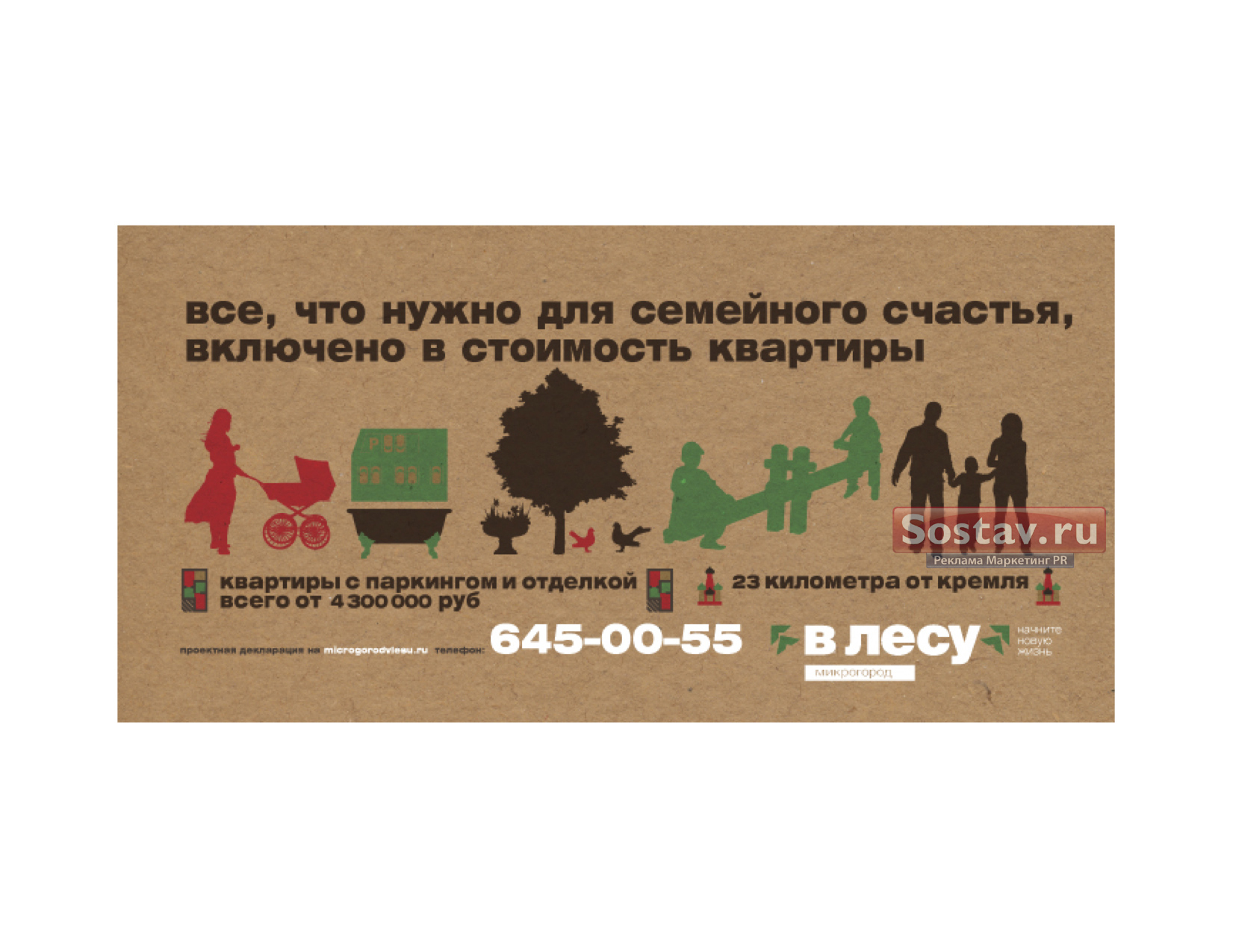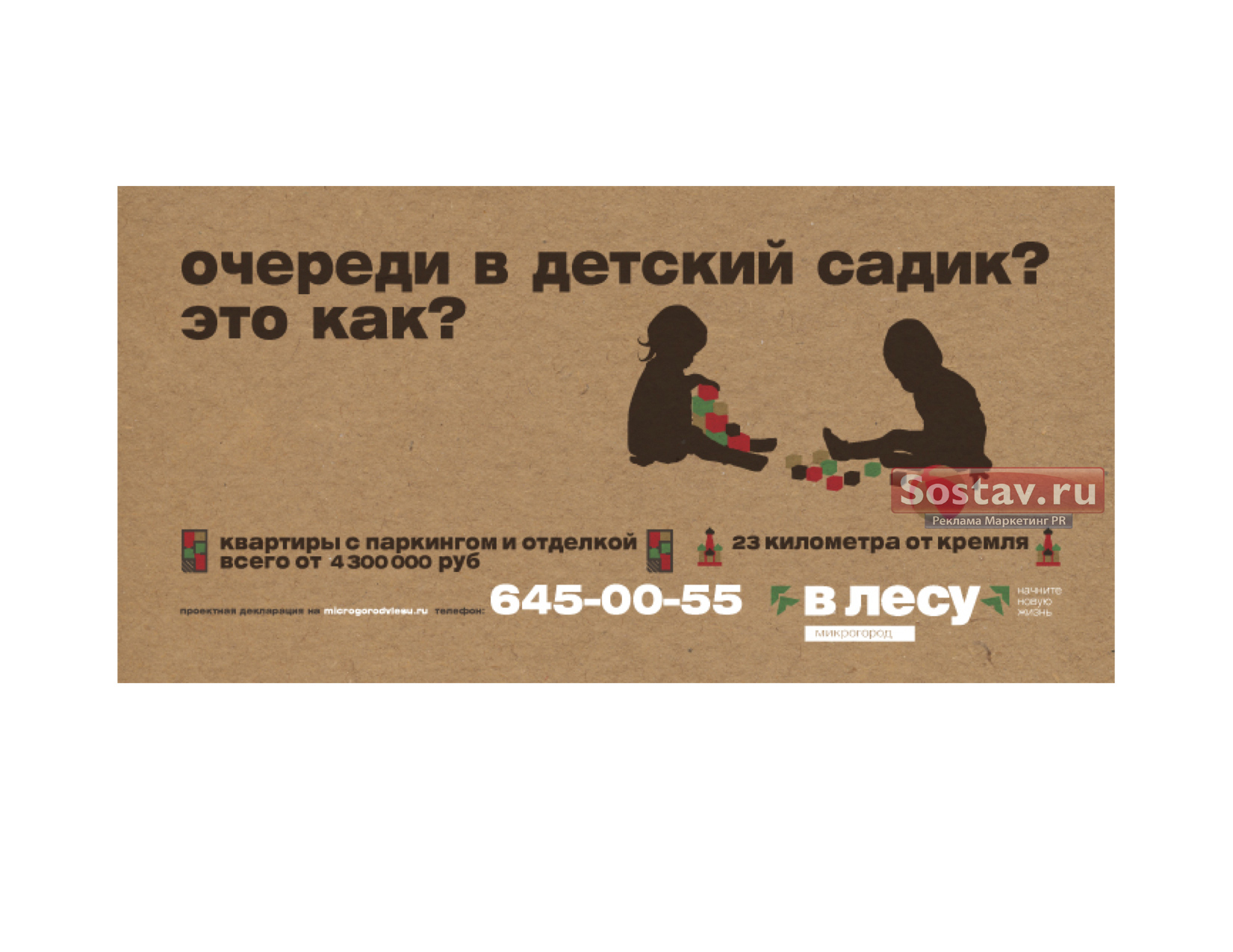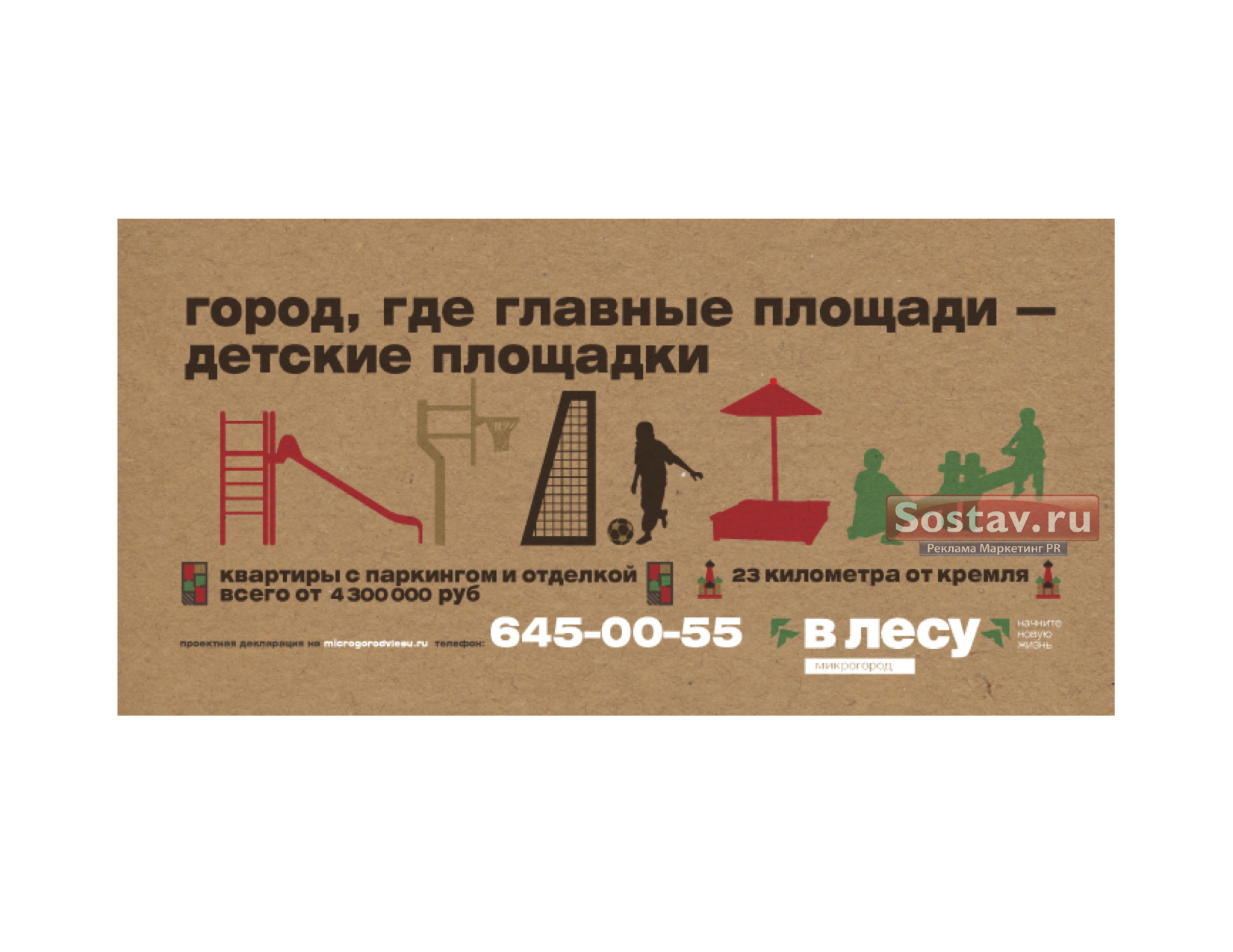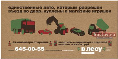Kijjaa! Digital Miracles открыли Европу в лесуRGI International запустила рекламную кампанию "микрогорода" в ближнем ПодмосковьеДевелопер RGI International запустил рекламную кампанию микрогорода "В лесу". "В лесу" позиционируется в качестве нового формата жилой недвижимости для среднего класса. Строительством микрогорода занимается RGI International, девелопер элитной жилой и коммерческой недвижимости. Рекламная кампания рассказывает о том, что "Микрогород "В лесу" - это воплощение европейского образа жизни: современной архитектуры и идеальной инфраструктуры, включающей детские сады, школы, спортивные и игровые площадки, фитнес-центр, магазины, аптеки, студии детского творчества и многое другое. В благоустройстве микрогорода предусмотрены зеленые дворы, прогулочные зоны, велосипедные дорожки и даже специальные площадки для выгула собак. "Микрогород "В лесу" ориентирован прежде всего на молодые семьи с детьми, - говорит Анна Чин-Го-Пин, директор по проектному маркетингу и PR RGI International, - Квартиры "В лесу" - небольшие по площади, но функциональные по планировке. Они продаются с готовой отделкой и местом в подземным паркинге. А парковка автомобилей во дворах запрещена. Мы также многое планируем сделать для развития городского сообщества, включая внедрение технологических инноваций, Интранета и строительство общественного центра, чтобы жители микрогорода стали добрыми соседями". "В рекламных кампаниях объектов недвижимости (тем более массового сегмента) девелоперы редко выходят за рамки стандартов, указывая только цену и расположение объекта, - говорит Катя Базилевская, Директор по стратегическому планированию Kijjaa! Digital Miracles, - В дополнение к базовым элементам мы попытались рассказать эмоциональную историю о том, почему жизнь семьи с детьми в микрогороде будет счастливой и комфортной. Это, прежде всего, "копирайтерская кампания". Визуально она решена в стилистике бренда, напоминающей иллюстрации из детской книжки". Кампания "В лесу" включает в себя нестандартные рекламные размещения на радио, в интернете и наружной рекламе. Помимо этого, в бизнес-центрах будут представлены нестандартные ambient-форматы. "Ребятам удалось создать на редкость ненавязчивую рекламу, что вызывает доверие и располагает, - говорит PR-менеджер компании "Пронто-Москва" Ярослав Козлов, (его компания запустила недавно яркую рекламную кампанию сайта irr.ru от "Инстинкта", также основанную на хорошем копирайте), - В то же время они четко выделились среди жилых комплексов, отказались от штампов (нет фасадов домов, нет интерьеров, нет лесных пейзажей) и пошли на риск (оберточно-бумажный или древесно-стружечно-плиточный фон, безусловно, рискованный ход, но именно он делает эту рекламу необычной). Простота и дружелюбие, с которыми сформулированы и выражены преимущества объекта, располагают, заинтересовывают, появляется желание узнать побольше. То есть, реклама работает. Просто работает. Такая кампания, конечно же, не вызовет общественного резонанса, не взбудоражит профессиональное сообщество, рекламные слоганы не пойдут в народ, а мы всегда перед нашими разработчиками ставим именно такие амбициозные задачи, потому, что наш продукт рассчитан на широкую аудиторию (7 500 000 в месяц), мы не можем себе позволить такие сдержанные концепции. RGI International решает более скромную задачу, у них локальный проект. Для 