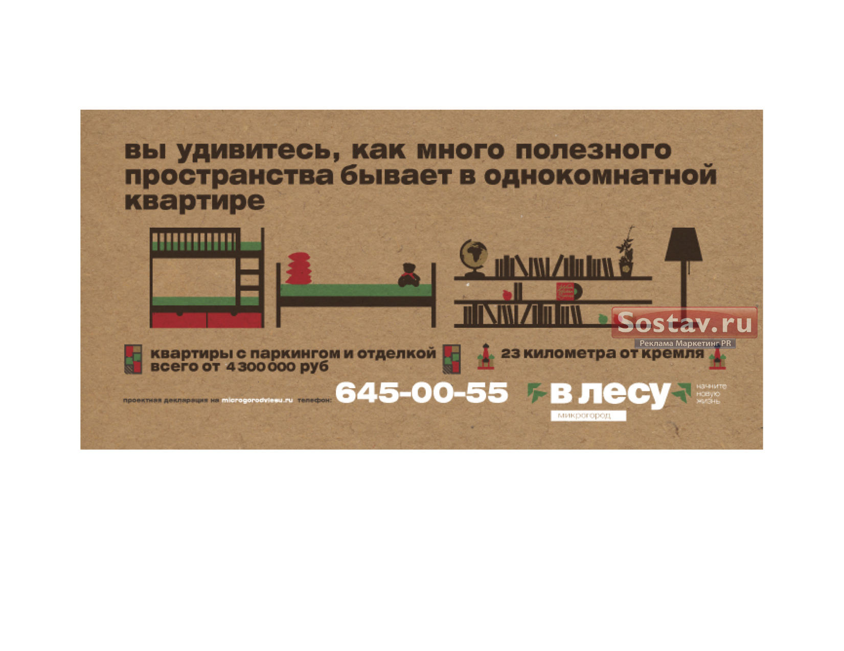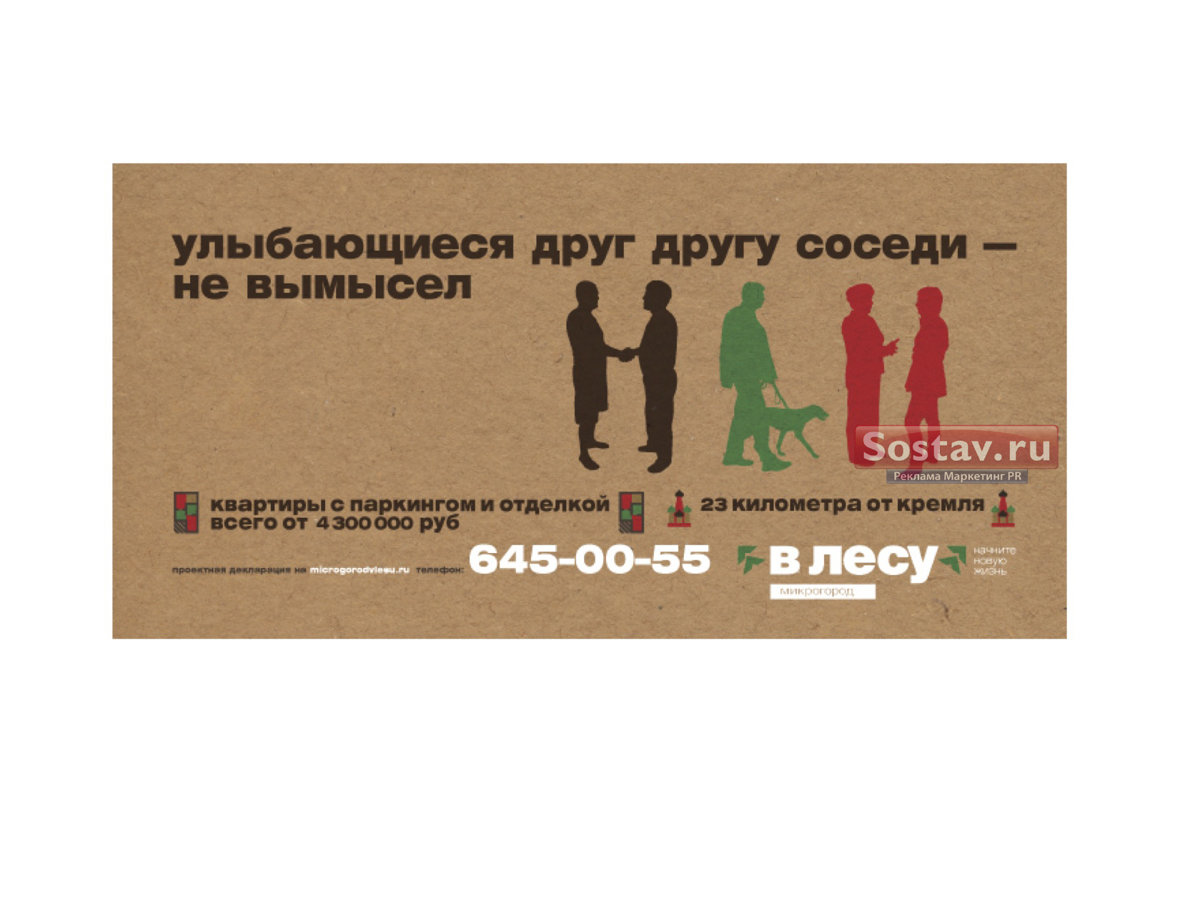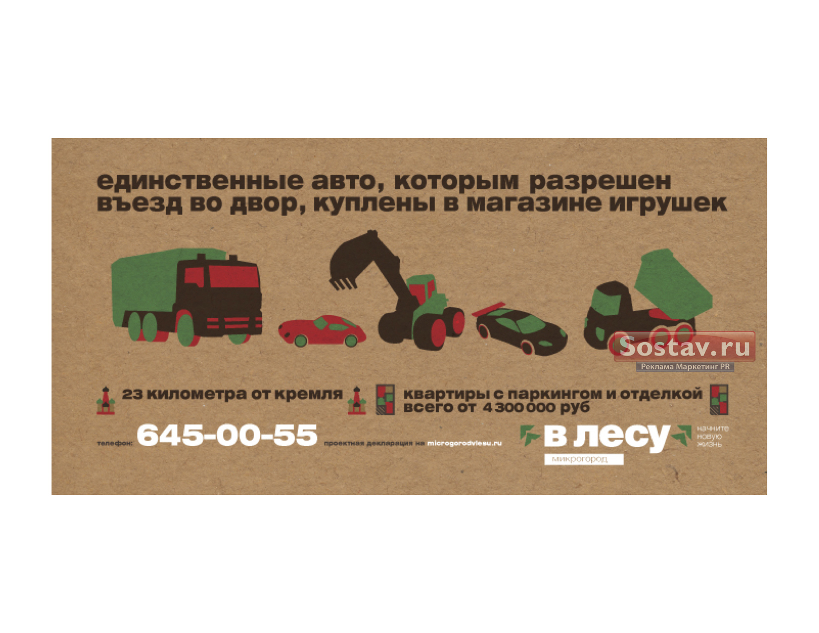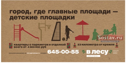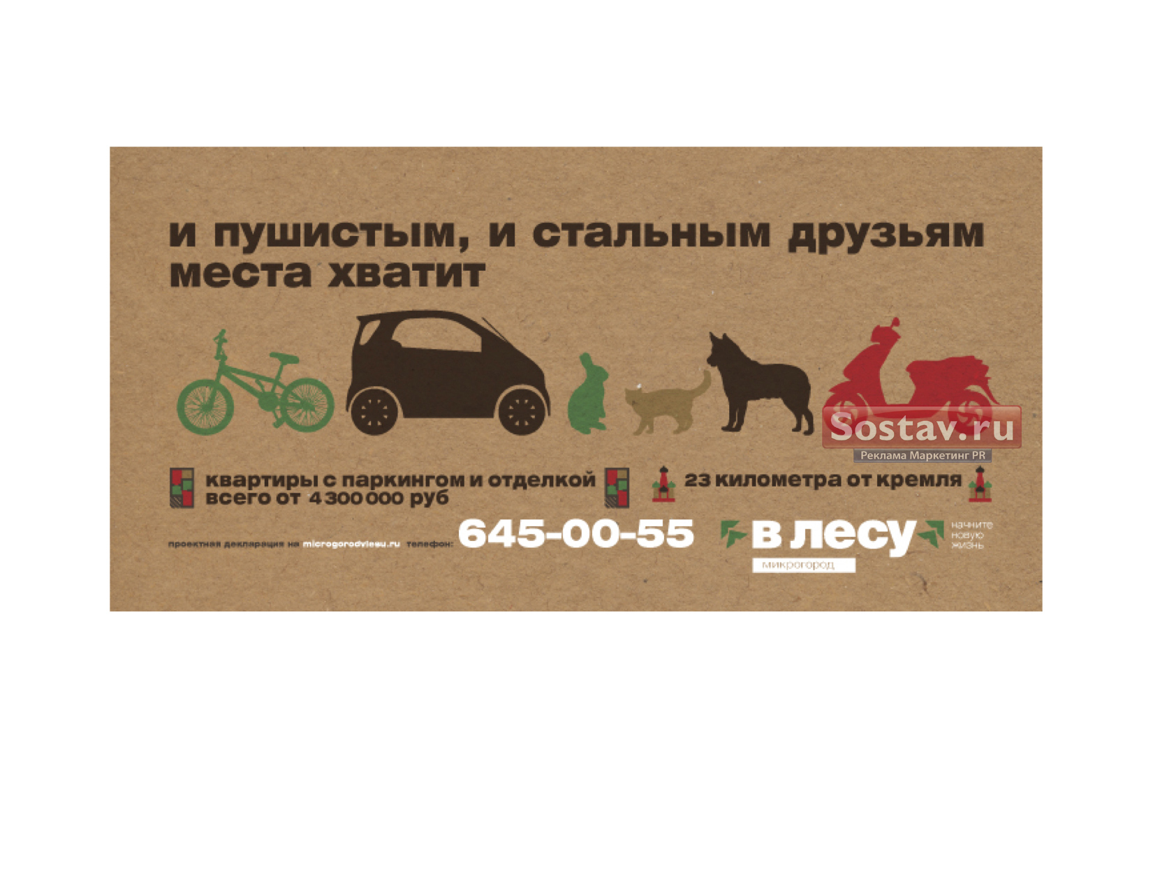 Kijjaa! Digital Miracles открыли Европу в лесуRGI International запустила рекламную кампанию "микрогорода" в ближнем ПодмосковьеДевелопер RGI International запустил рекламную кампанию микрогорода "В лесу". "В лесу" позиционируется в качестве нового формата жилой недвижимости для среднего класса. Строительством микрогорода занимается RGI International, девелопер элитной жилой и коммерческой недвижимости. Рекламная кампания рассказывает о том, что "Микрогород "В лесу" - это воплощение европейского образа жизни: современной архитектуры и идеальной инфраструктуры, включающей детские сады, школы, спортивные и игровые площадки, фитнес-центр, магазины, аптеки, студии детского творчества и многое другое. В благоустройстве микрогорода предусмотрены зеленые дворы, прогулочные зоны, велосипедные дорожки и даже специальные площадки для выгула собак. "Микрогород "В лесу" ориентирован прежде всего на молодые семьи с детьми, - говорит Анна Чин-Го-Пин, директор по проектному маркетингу и PR RGI International, - Квартиры "В лесу" - небольшие по площади, но функциональные по планировке. Они продаются с готовой отделкой и местом в подземным паркинге. А парковка автомобилей во дворах запрещена. Мы также многое планируем сделать для развития городского сообщества, включая внедрение технологических инноваций, Интранета и строительство общественного центра, чтобы жители микрогорода стали добрыми соседями". "В рекламных кампаниях объектов недвижимости (тем более массового сегмента) девелоперы редко выходят за рамки стандартов, указывая только цену и расположение объекта, - говорит Катя Базилевская, Директор по стратегическому планированию Kijjaa! Digital Miracles, - В дополнение к базовым элементам мы попытались рассказать эмоциональную историю о том, почему жизнь семьи с детьми в микрогороде будет счастливой и комфортной. Это, прежде всего, "копирайтерская кампания". Визуально она решена в стилистике бренда, напоминающей иллюстрации из детской книжки". Кампания "В лесу" включает в себя нестандартные рекламные размещения на радио, в интернете и наружной рекламе. Помимо этого, в бизнес-центрах будут представлены нестандартные ambient-форматы. "Ребятам удалось создать на редкость ненавязчивую рекламу, что вызывает доверие и располагает, - говорит PR-менеджер компании "Пронто-Москва" Ярослав Козлов, (его компания запустила недавно яркую рекламную кампанию сайта irr.ru от "Инстинкта", также основанную на хорошем копирайте), - В то же время они четко выделились среди жилых комплексов, отказались от штампов (нет фасадов домов, нет интерьеров, нет лесных пейзажей) и пошли на риск (оберточно-бумажный или древесно-стружечно-плиточный фон, безусловно, рискованный ход, но именно он делает эту рекламу необычной). Простота и дружелюбие, с которыми сформулированы и выражены преимущества объекта, располагают, заинтересовывают, появляется желание узнать побольше. То есть, реклама работает. Просто работает. Такая кампания, конечно же, не вызовет общественного резонанса, не взбудоражит профессиональное сообщество, рекламные слоганы не пойдут в народ, а мы всегда перед нашими разработчиками ставим именно такие амбициозные задачи, потому, что наш продукт рассчитан на широкую аудиторию (7 500 000 в месяц), мы не можем себе позволить такие сдержанные концепции. RGI International решает более скромную задачу, у них локальный проект. Для 