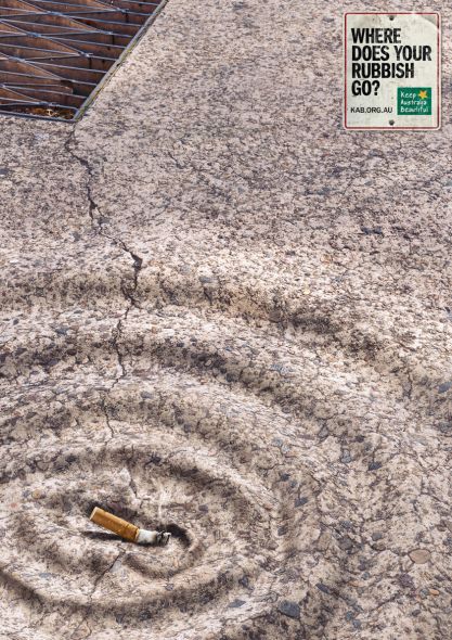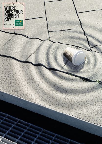 KAB призывает держать Австралию в чистотеОрганизация по защите окружающей среды выпустила серию роликов в рамках социальной кампанииСерия принтов под слоганом Where does your rubbish go? ("А куда девается ваш мусор?") была подготовлена организацией по защите окружающей среды в Австралии KAB (Keep Australia Beautiful). На трех принтах изображены банки, обертки и окурки, которые попадая на асфальт, создают некую вибрацию, как на воде. Таким образом, креаторы старались показать, что бросая мусор, он никуда не исчезает.