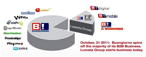Компания Lumata. Новый игрок на рынке B2B в области мобильнoго маркетинга.Francisco Partners и Buongiorno создали новую компанию для интеграции существующих B2B подразделений компании Buongiorno, с планами на устойчивый рост в сегменте мобильного маркетинга.Крупнейшая частная инвестиционная компания Francisco Partners и мировой лидер на рынке платного мобильного контента - компания Buongiorno SpA (FTSE ITALY STAR: BNG) сегодня объявили о создании компании Lumata. Новая компания будет специализироваться на обслуживании B2B клиентов в быстрорастущем сегменте мобильного маркетинга. Lumata объединит под новым брендом все успешные проекты Boungiorno для операторов мобильных сетей, торговых брендов и производителей. А значительная финансовая поддержка Francisco Partners позволит новой компании реализовать самые смелые проекты для своих крупнейших клиентах во всех странах мира.