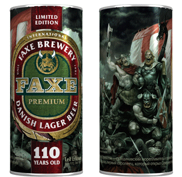 FAXE – международная марка светлого пива класса премиум из Дании. Она существует на рынке уже более 100 лет. На сегодняшний день это пиво экспортируется в более чем 40 стран мира. Вековые традиции датского пивоварения, воплощены на самом современном заводе Европы, заводе Московской Пивоваренной Компании. В 2011 году марка FAXE отмечает свой 110-летний юбилей. В честь этого был создан юбилейный дизайн банки, разработанный для мужественных и храбрых людей, преодолевающих и превосходящих стандарты, уверенных в себе мужчин - настоящих современных викингов.