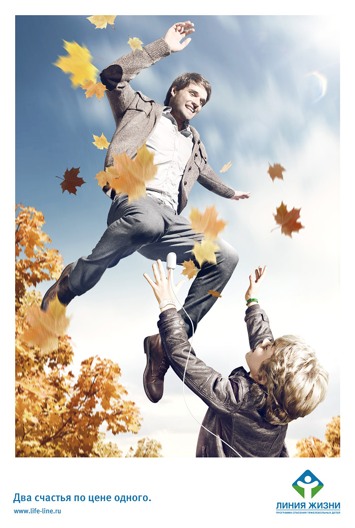 Deluxe Interactive начертило «Линии Жизни»Агентство разработало серию принтов для благотворительного фондаАгентство Deluxe Interactive разработали креатив рекламной кампании, которая называется "Два счастья по цене одного". Идея заключается в том, что спасая кому-то жизнь, ты делаешь счастливым и себя. "Мы взяли знакомые визуальные изображения семейного счастья, когда взрослые делают ребенка счастливым и поменяли действующих лиц, показывая, что ребенок точно также может сделать счастливым взрослого", - говорит Александр Семин, креативный директор Deluxe Interactive. "Каждый день нам приходят письма, в которых мамы и папы рассказывают о жизни своих детей после операции. Из этих историй можно составить целую книгу. В некотором смысле ее можно назвать учебником, кратким пособием для тех, кто хочет быть счастливым", - говорит Фаина Захарова, основатель фонда "Линия Жизни". Цель рекламной кампании - привлечь внимание людей к теме благотворительности, культивировать ее в самих себе, в своих семьях и среди друзей.