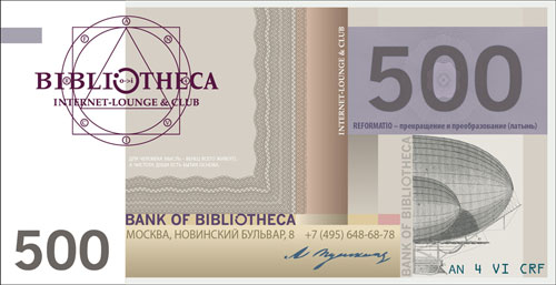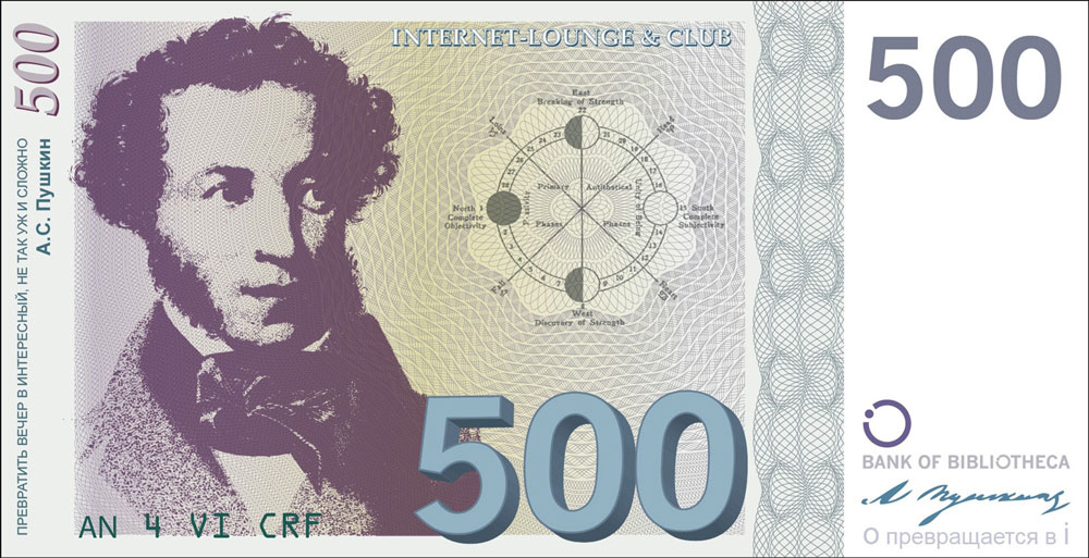 «Библиitека» напечатала себе 500 евро с ПушкинымEvent- агентство ADVANZA привязало скидку по этой карте к колебаниям биржевого курсаInternet-lounge&club «Библиitека» предложила своим постоянным гостям в предновогодний период обменять ранее выданную классическую пластиковую клубную карту, дающую ряд привилегий и скидок, на идентичную по функционалу, но оригинальную в своем исполнении карту- банкноту, дизайн которой перекликается с самой большой по номиналу купюрой Евро. Креативная идея и концепция новой клубной карты-банкноты принадлежит арт- директору event-агентства ADVANZA Дмитрию Кравчуку. Он же предложил внести в клубную систему элемент случайности, своеобразной игры и отказаться от фиксированных скидок. Так, эксплуатируя связь денег с фондовым рынком, размер скидки в «Библиitеке» будет меняться ежедневно. Скидку можно будет рассчитывать самостоятельно, отталкиваясь от процентного изменения реального биржевого индекса, принятого заведением в качестве ориентира на текущую календарную неделю. Напечатана клубная банкнота «Библиitеки» на не рвущейся, износостойкой пластиковой бумаге, соответствующей толщине и размеру настоящей банковской купюры, которая меняет свой цвет под ультрафиолетовой лампой, дает схожие с реальными Евро тактильные ощущения и даже «хрустит» как новенькая. Имея абсолютно реалистичный вид, карта-банкнота инстинктивно подталкивает «Библиitекарей» хранить ее в кошельке среди российских денег, где за счет своего чуть большего размера, она хорошо заметна. Как говорят в самой «Библиitеке», они больше года думали над нестандартной идеей и концепцией клубной карты для своих постоянных гостей. «Мы хотели уйти от банальных решений, сделать клубную систему интересней, а саму карту более оригинальной». |