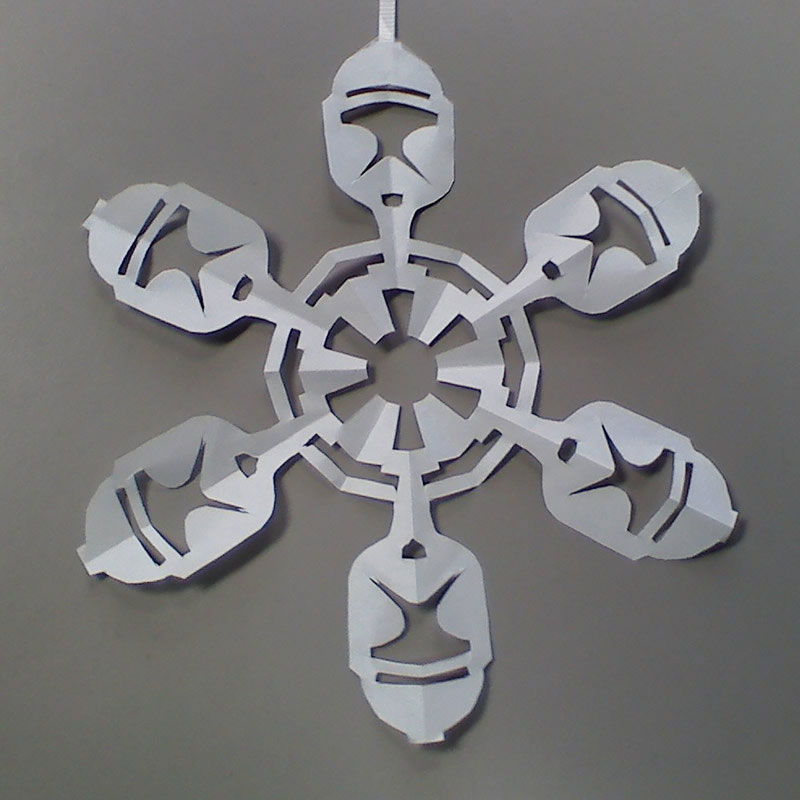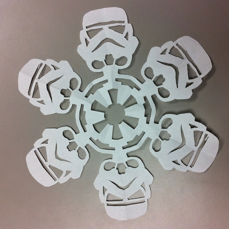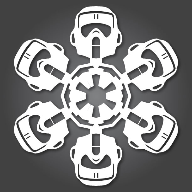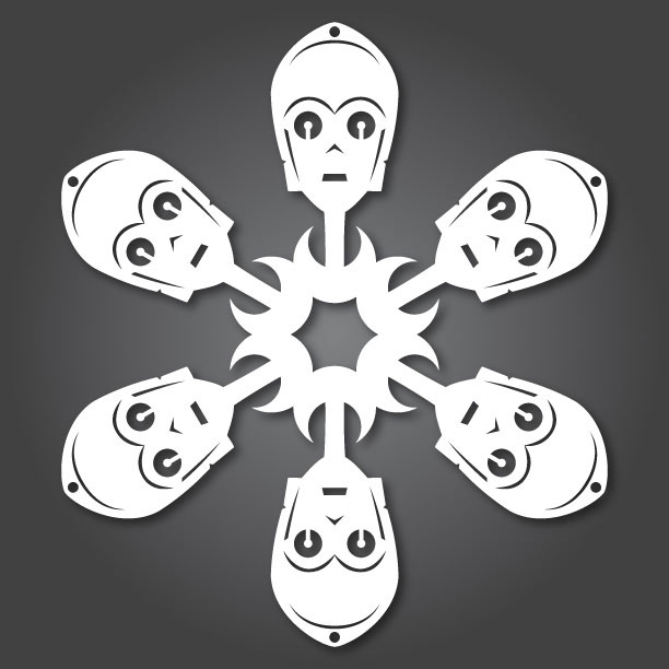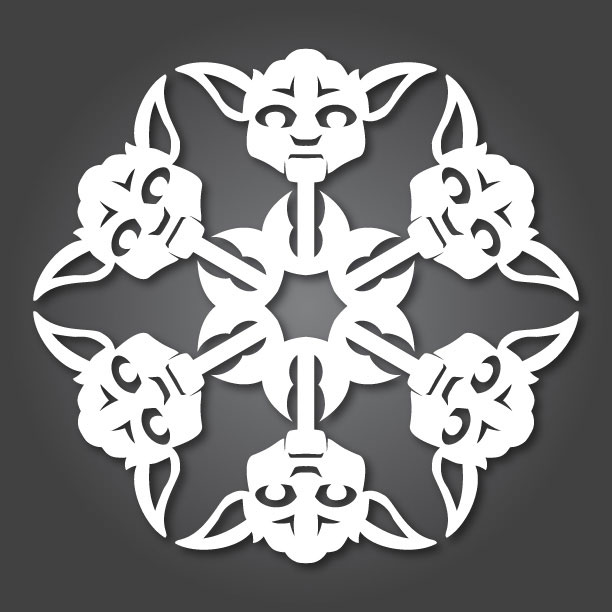 Снежинки в стиле «Звездных войн»Портал Mattersofgrey выложил схемы для вырезания украшений на окна в виде Дарта Вейдера, Йоды и других персонажейВ преддверии Нового года семейная пара из Америки решила отметить праздник в стиле популярной новеллы «Звездные Войны». Эту же идею подхватил портал mattersofgrey.com, придумав схемы для вырезания. Скачать PDF — версию схемы для вырезания снежинок своими руками можно на самом сайте, где выложены примеры работ. «Звездные войны», также известные, как Star Wars – культовая эпическая фантастическая сага, задуманная американским режиссёром Джорджем Лукасом в начале 1970-х годов и позднее расширенная. Фильм оказал огромное влияние на международную поп-культуру и неоднократно признавался лучшим научно-фантастическим фильмом. Картина имела огромный кассовый успех, что фактически спасло компанию 20th Century Fox от угрожавшего ей тогда банкротства. Когда сомнения в окупаемости проекта пропали, первый фильм получил подзаголовок «Эпизод IV: Новая надежда», и вскоре за ним появились два продолжения.