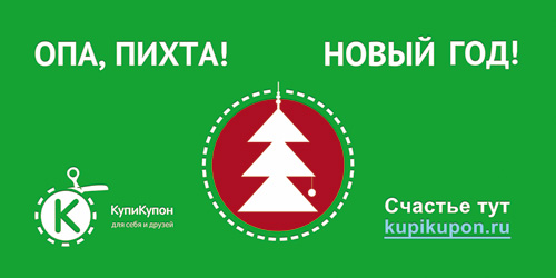 «КупиКупон» показал всем опуКреатив для рекламной кампании разработан in-houseКомпания "КупиКупон" запустила предновогоднюю рекламную кампанию, которая проходит под слоганом "Опа, пихта, новый год". Концепция рекламной кампании была разработана in-house. "Рекламный щит доступен для обзора всем, вне зависимости от возраста и интереса, - говорит Алексей Соколов, директор по маркетингу КупиКупон. - Поэтому в данном случае, мы ориентированы на всех, кому мы интересны, и конечно же на тех, кто только собирается с нами познакомиться и каждый день делать выгодные покупки для себя и друзей. В преддверии Нового года внимание самой широкой аудитории сосредоточено на предстоящем празднике и сопутствующих вещах. Поэтому все запускают рекламные кампании на эту тему. " КупиКупон" в этом - не исключение. Но мы использовали оригинальную вариацию. Многие покупают, но не все знают, что пихта - это по сути та же елка. Только дешевле. Так и сервис "КупиКупон" предлагает привычные товары и услуги, но по непривычно низким ценам". "Посредством такой креативной имиджевой рекламы мы решили просто поздравить всех с наступающим Новым Годом, а также сообщить тем, кто он нас ещё не знает, что все подарки и все, что может порадовать вас в праздники можно приобрести с приятными скидками на сайте www.kupikupon.ru" - говорит Соколов. - К тому же мы решили внести долю фана и позитива, и отразить это в рекламной кампании - ведь мы призваны делать людей счастливее!