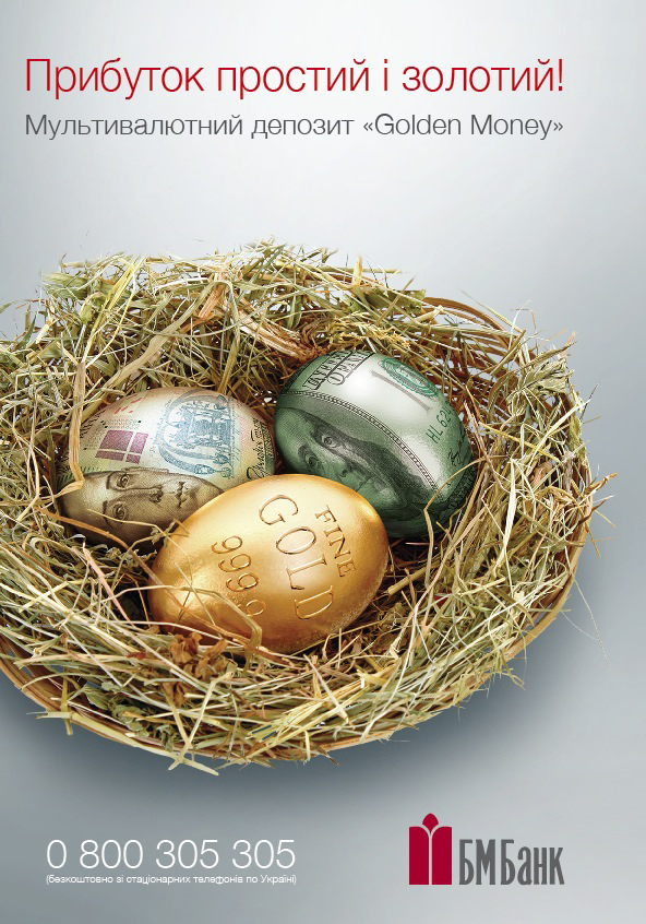 Рекламное агентство «Passport» разработало мультивалютный креативУкраинское рекламное агентство "Passport" разработало макет в прессу для мультивалютного депозита от БМ Банка. Это новая услуга вклада сразу в трех валютах, которая позволяет минимизировать финансовые риски и получить высокий доход. Креативный директор рекламного агентства "Passport" Онищенко Дина: Финансовые яйца, не только растут и приносят доход, который считают не только по осени, но и бережно сохраняются с минимальной долей рисков в комфортном гнезде. Это все те преимущества, которые надо было отразить в макете. Состав творческой группы: