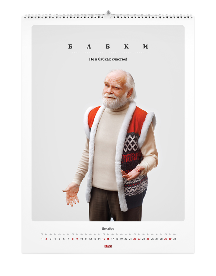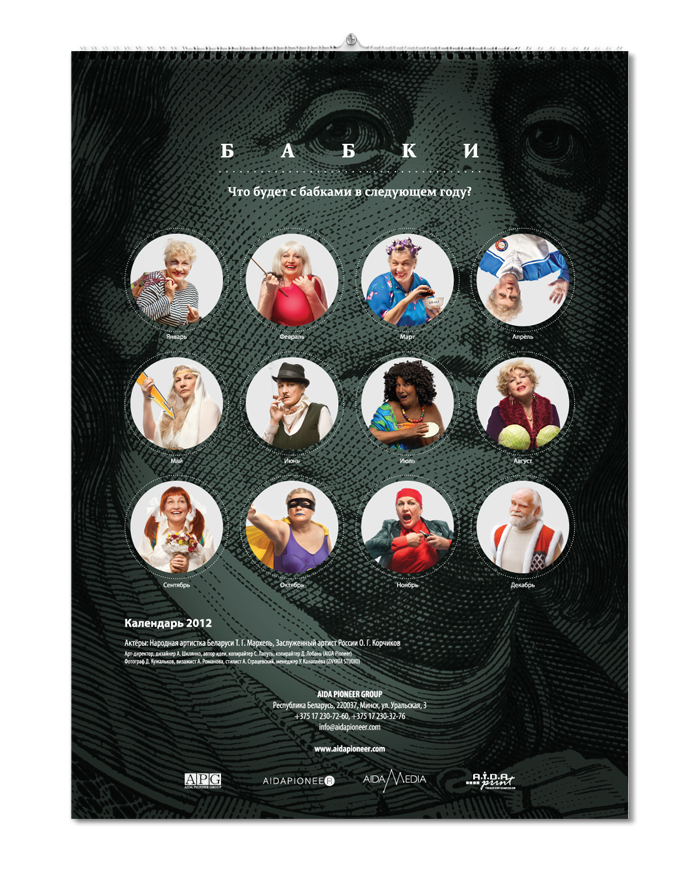 AIDA Pioneer рассказали о бабкахБелорусское рекламное агентство посвятило свой календарь на 2012 год финансовым вопросамAIDA Pioneer Устали думать, что будет с бабками завтра? Уйдут ли они насовсем или будут хоть изредка заглядывать в гости в следующем году? Не знаете, где и в чём их хранить? Вся правда - в календаре AIDA Pioneer Group "Бабки". "Бабки" - это 12 разноплановых образов из жизни, иллюстрирующих афоризмы о деньгах. Состав творческой группы:
