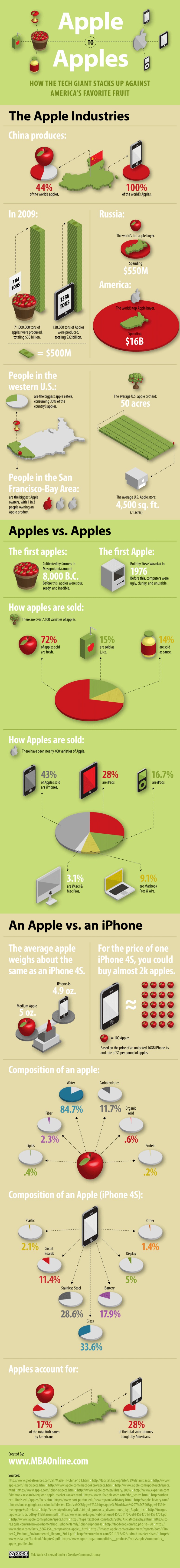 Аналитическая компания MBA Online представила занимательную инфографику, где сравнила потребление и популярность корпорации Apple с яблоками.